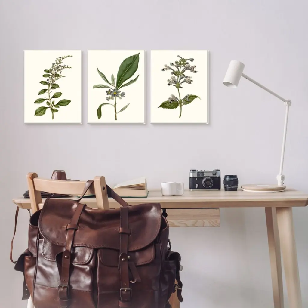Stupell Minimal Blue Botanical Study Over Neutral Beige, 3Pc Multi Piece Framed Wall Art Set - 16 X 20 - Black