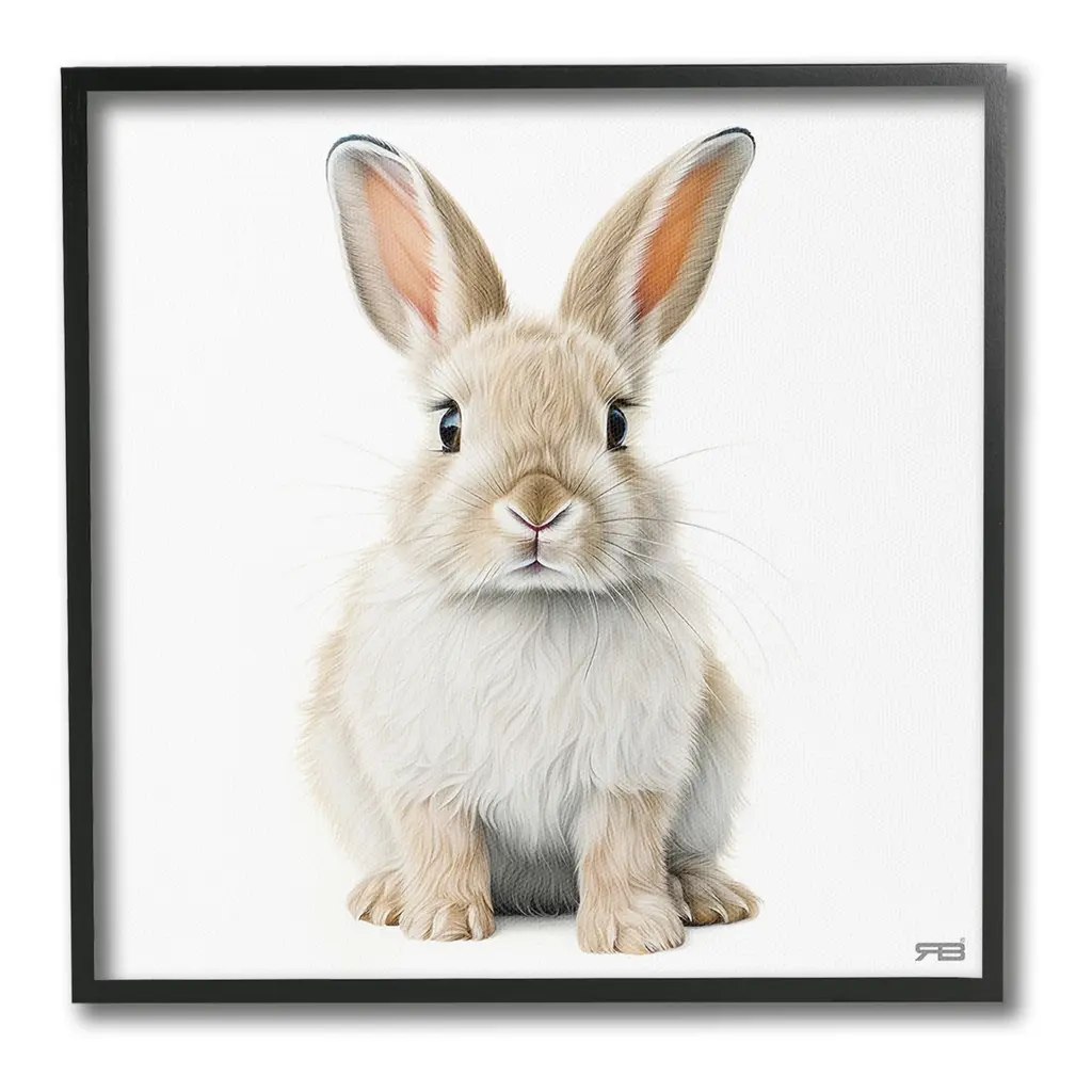 Add dimension to any room with our textured Framed Giclee Artwork. Our framed artwork is securely mounted into a 1.5-inch thick wood grain frame and ready to hang. Frames are available in three alluring styles: black, gray farmhouse and white. In addition, you should check out our oversized options if you want a statement piece. Stupell Wall Art is made in the USA.Features: Dimensions: 12 x 1.5 x 12 FramedFramed Giclee Product Sizes Include 12"x12", 17"x17", and 24"x24". Framed Giclee Products have a 1.5" Depth. Wall Art is Ready to Hang with Hardware Free Hanging. No installation required. For Easy Set Up Lean or Layer Artwork on Shelf or Against Wall.Our giclée prints are carefully mounted on a durable MDF backing, and then perfectly finished in a 1.5 inch thick woodgrain frame. Mounted frame colors include black, gray farmhouse and white. Made In USA.Artwork Relates To: Animal, Mammal, Rabbit, Pet, Hare, Bunny, MinimalDesign by RB