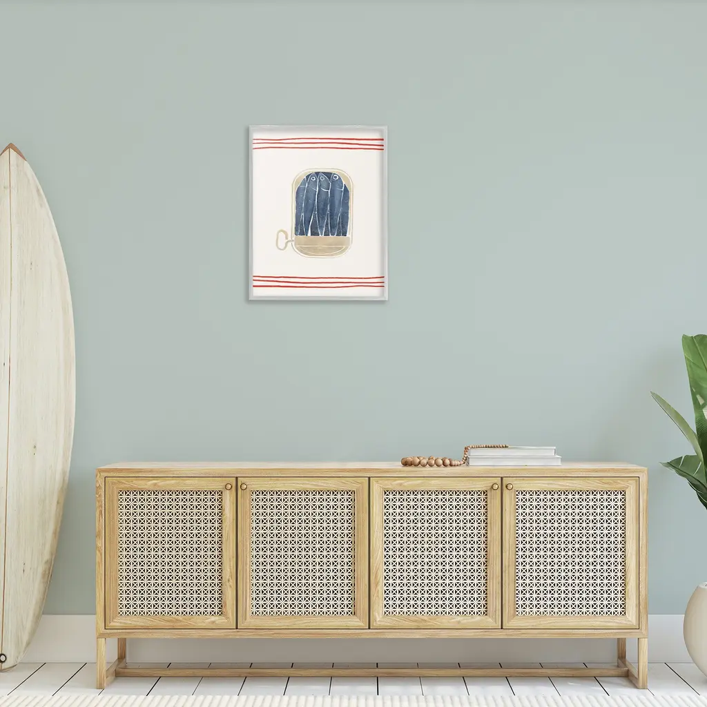 Add dimension to any room with our textured Framed Giclee Artwork. Our framed artwork is securely mounted into a 1.5-inch thick wood grain frame and ready to hang. Frames are available in three alluring styles: black, gray farmhouse and white. In addition, you should check out our oversized options if you want a statement piece. Stupell Wall Art is made in the USA.Features: Dimensions: 11 x 1.5 x 14 FramedFramed Giclee Products are available in the sizes 11"x14", 16"x20" or 24"x30". All Framed Giclee Products have a 1.5" Depth. Wall Art is Ready to Hang with Hardware Free Hanging. No installation required. For Easy Set Up Lean or Layer Artwork on Shelf or Against Wall.Our giclée prints are carefully mounted on a durable MDF backing, and then perfectly finished in a 1.5 inch thick woodgrain frame. Mounted frame colors include black, gray farmhouse and white. Made In USA.Artwork Relates To: Seafood, Sardines, Can, Minimal, Stripes, Pattern, Nautical, Beach, FishDesign by Yuyu Pont