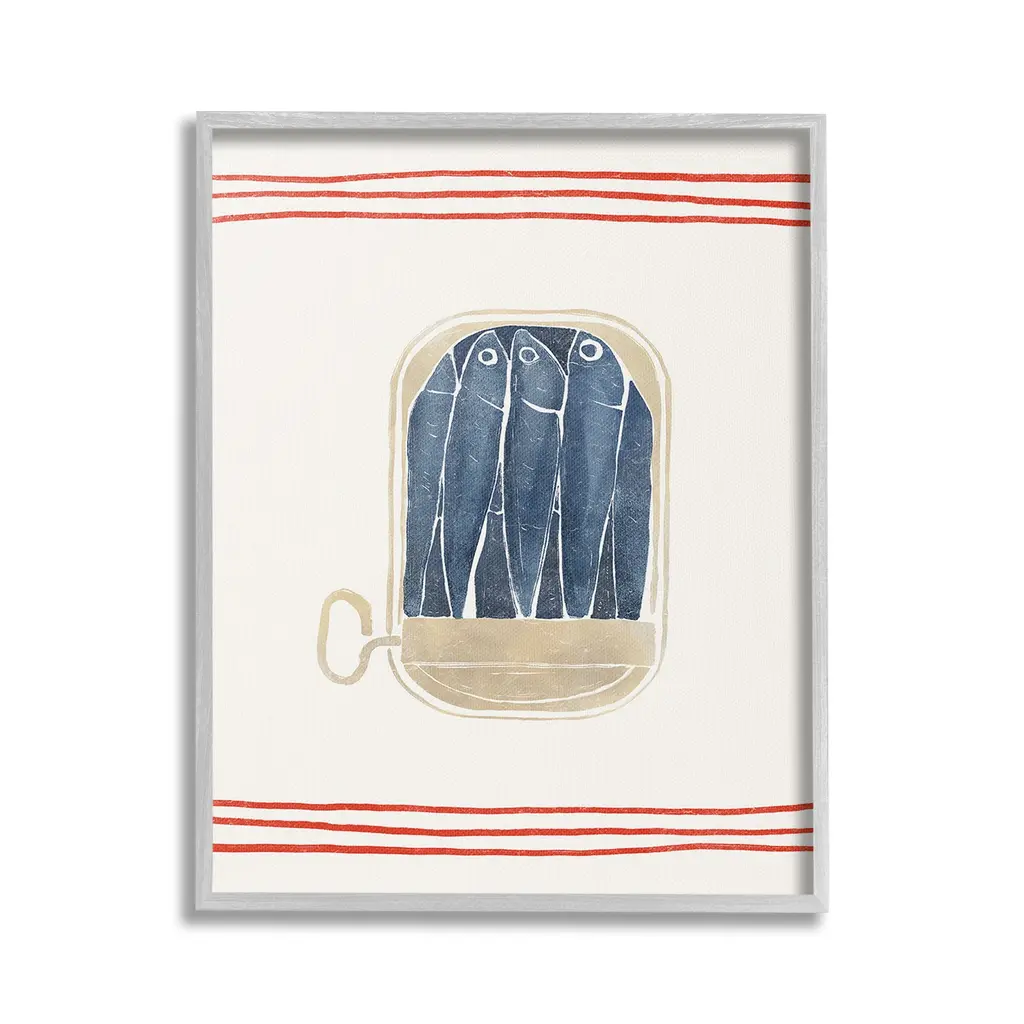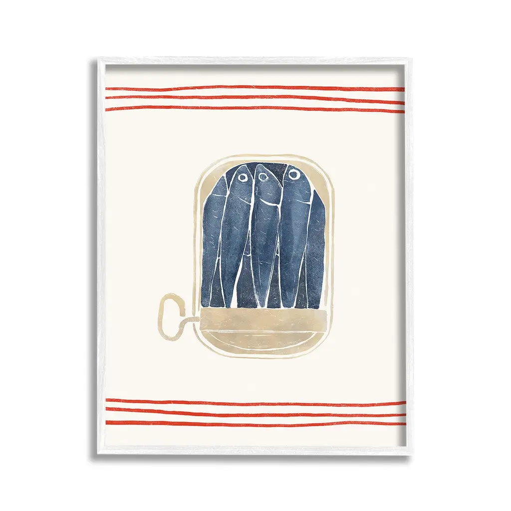 Our wall plaques start as high-quality lithograph prints mounted on durable 0.5-inch thick MDF wood. Each piece is hand finished and comes with a fresh layer of white foil on the sides to give it a crisp, clean look. Plaques arrive ready to hang without installation and come with removable plastic corners to keep them from damage in transit. Stupell Wall Art is made in the USA.Features: Dimensions: 10 x 0.5 x 15 InchesWall Plaque Product Sizes Include 10"x15" and 13"x19". All wall plaque products have a 0.5" Depth. Wall Art is Ready to Hang with Hardware Free Hanging. No installation required. For Easy Set Up Lean or Layer Artwork on Shelf or Against Wall.All of our wall plaques start off as high quality lithograph prints that are then mounted on durable 0.5 inch thick MDF wood. Each piece is hand finished and comes with a fresh layer of foil on the sides to give it a crisp clean look. Made In USA.Artwork Relates To: Seafood, Sardines, Can, Minimal, Stripes, Pattern, Nautical, Beach, FishDesign by Yuyu Pont