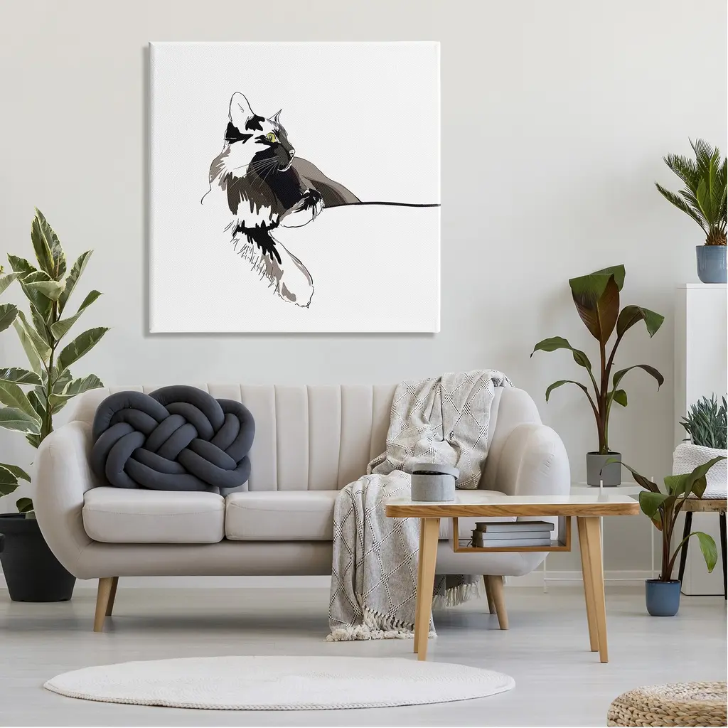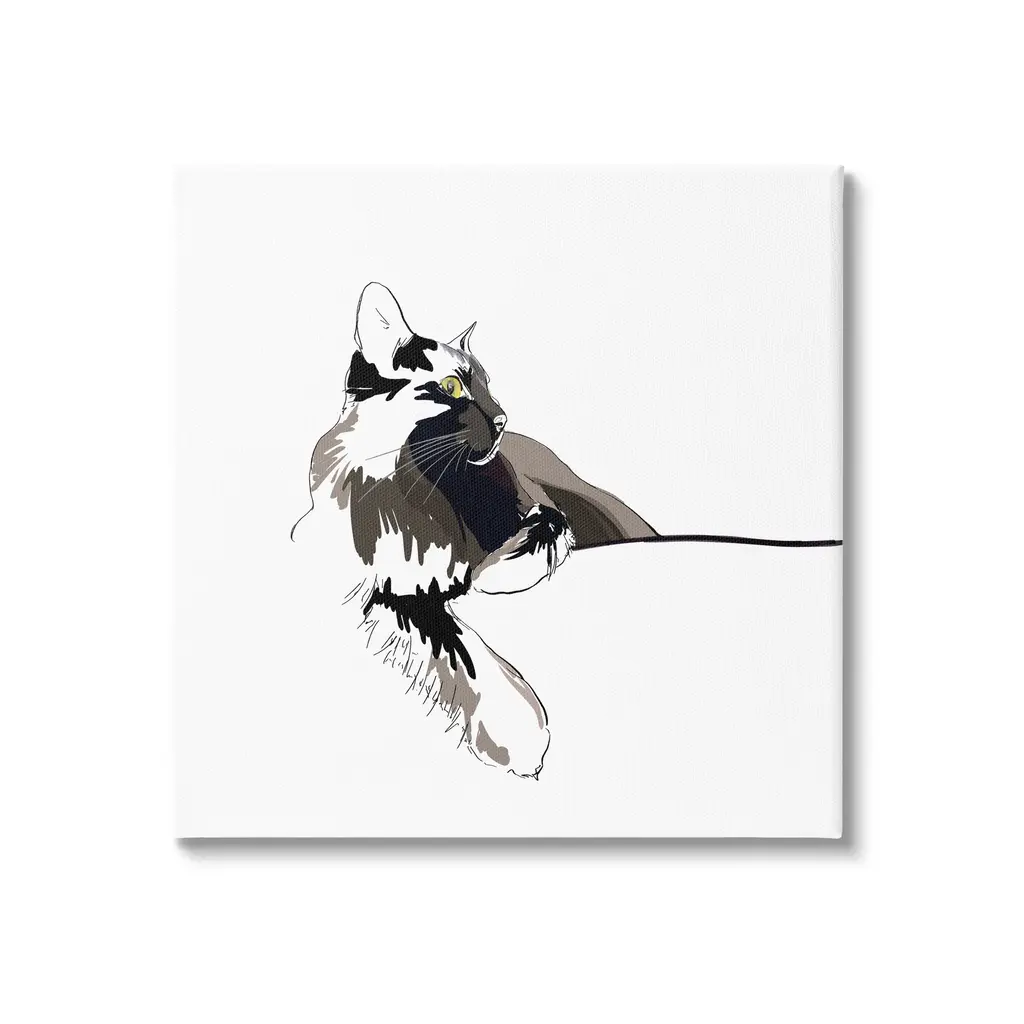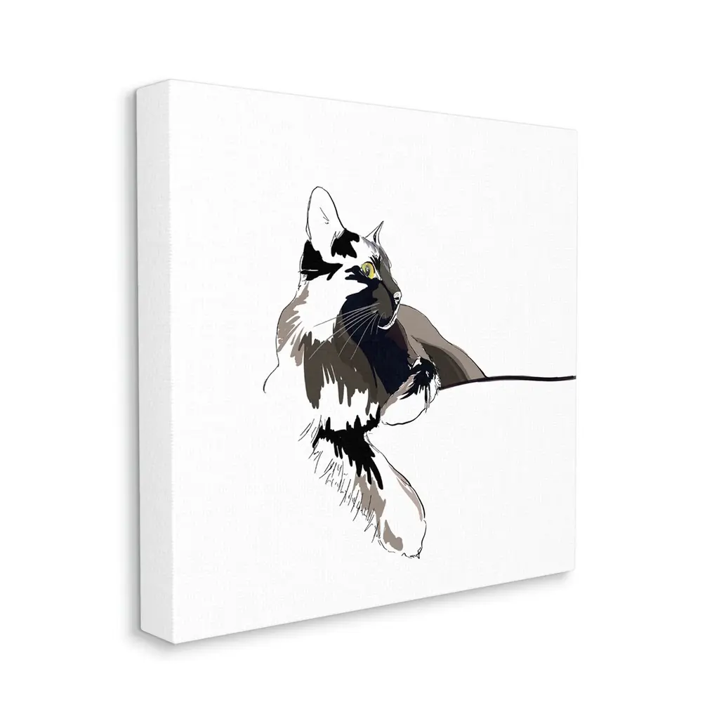 We create our stretched canvas to the highest standards. Using only the highest quality inks and canvas on Mimaki printers, we hand-cut and stretch each piece over a 1.5-inch thick wooden frame for hanging. As a result, the art comes ready to hang on the sturdy ledge with no installation required. Stupell Wall Art is made in the USA.Features: Dimensions: 17 x 1.5 x 17 InchesStretched Canvas Sizes Include Standard: 17 x 1.5 x 17 Large: 24 x 1.5 x 24 X-Large: 30 x 1.5 x 30 Oversized: 36 x 1.5 x 36Wall Art is Ready to Hang - No Installation or Hardware Needed. For Easy Set Up Lean or Layer Artwork on Shelf or Against Wall.Our stretched canvas is created with the highest standards. We use only the highest quality inks and canvas on our in house Mimaki printers, and then hand cut and stretch each piece over a 1.5 inch thick wooden frame for hanging. Made In USA.Artwork Relates To: Animal, Cat, Mammal, Pet, MinimalDesign by Emily Kalina