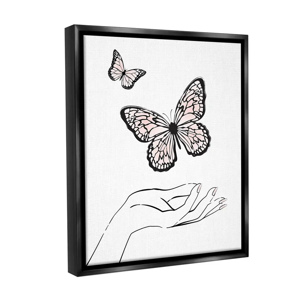 Elevate your home or office to the next level with Stupell Framed Floating Canvas Wall Art. Our premium hand-stretched canvas is mounted securely into a sturdy lightweight frame. The museum-style gap between the wrapped canvas and the box frame gives the illusion of floating artwork. Stupell Wall Art is made in the USA.Features: Dimensions: 17 x 1.7 x 21 Frame, 16 x 1.5 x 20 Canvas ArtFloating Frame Canvas Products are available in sizes 17"x21" and 25"x31". All Floating Frame Canvas Products have a 1.7" Depth.Wall Art is Ready to Hang with Hardware Free Hanging. No Installation required. For Easy Set Up Lean or Layer Artwork on Shelf or Against Wall. Artwork is Permently Fixed into the Frame.Our elevated 1.7" Thick Floating Frame is the perfect complement to our canvas style Wall Art. We use only the highest quality inks in house with industry leading printing solutions. Canvas is hand stretched over a durable wood foundation and then mounted securly into a Modern Box Frame. Made in the USA.Artwork Relates To: Animal, Butterfly, Bug, Insect, Hand, Pastel, Pink, Minimal, GlamDesign by Martina Pavlova