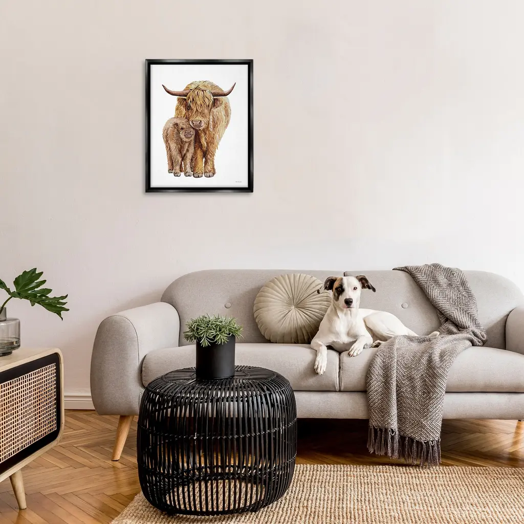 Elevate your home or office to the next level with Stupell Framed Floating Canvas Wall Art. Our premium hand-stretched canvas is mounted securely into a sturdy lightweight frame. The museum-style gap between the wrapped canvas and the box frame gives the illusion of floating artwork. Stupell Wall Art is made in the USA.Features: Dimensions: 17 x 1.7 x 21 Frame, 16 x 1.5 x 20 Canvas ArtFloating Frame Canvas Products are available in sizes 17"x21" and 25"x31". All Floating Frame Canvas Products have a 1.7" Depth.Wall Art is Ready to Hang with Hardware Free Hanging. No Installation required. For Easy Set Up Lean or Layer Artwork on Shelf or Against Wall. Artwork is Permently Fixed into the Frame.Our elevated 1.7" Thick Floating Frame is the perfect complement to our canvas style Wall Art. We use only the highest quality inks in house with industry leading printing solutions. Canvas is hand stretched over a durable wood foundation and then mounted securly into a Modern Box Frame. Made in the USA.Artwork Relates To: Minimal, Animal, Mammal, Farm, Country, Cow, CattleDesign by Seven Trees Design