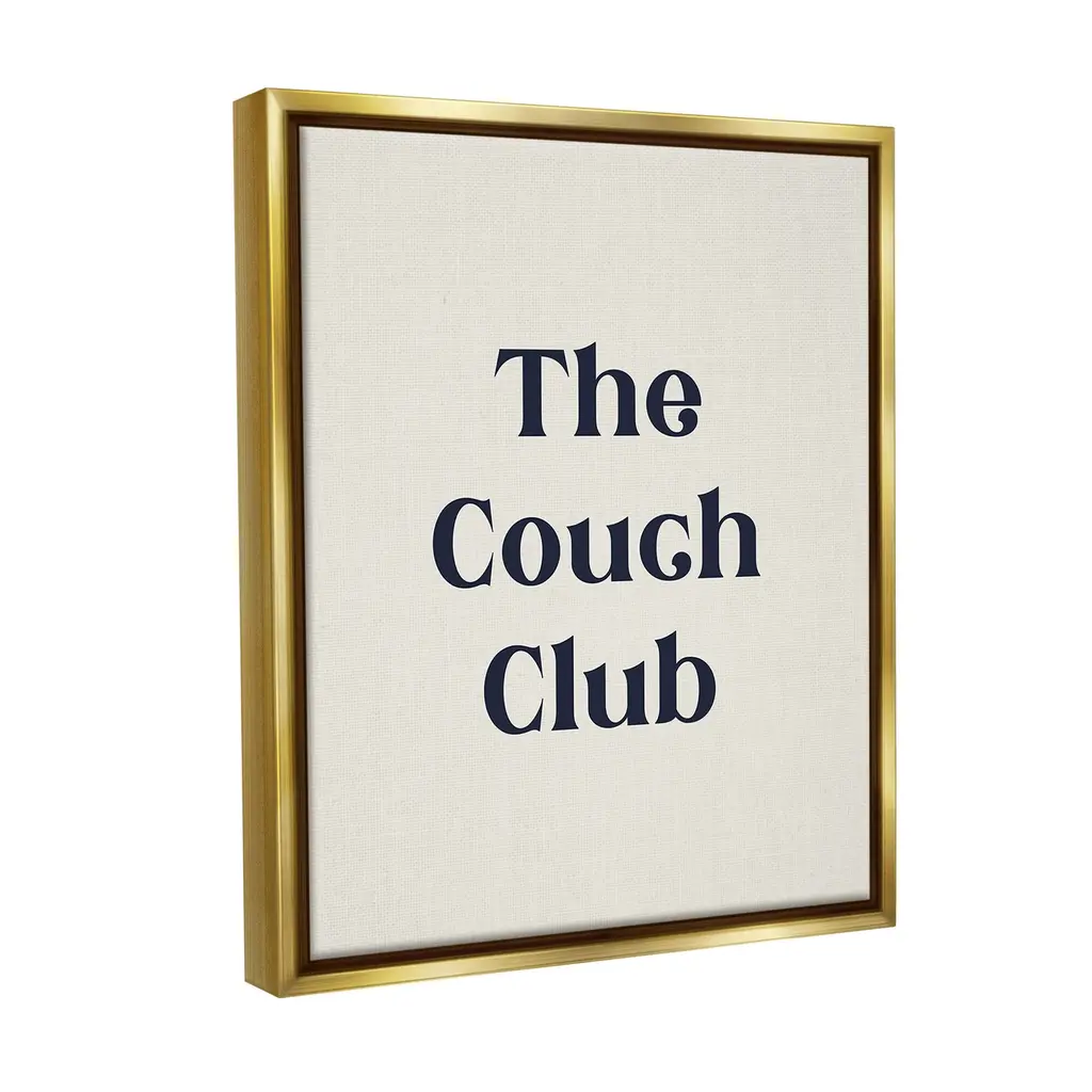 Elevate your home or office to the next level with Stupell Framed Floating Canvas Wall Art. Our premium hand-stretched canvas is mounted securely into a sturdy lightweight frame. The museum-style gap between the wrapped canvas and the box frame gives the illusion of floating artwork. Stupell Wall Art is made in the USA.Features: Dimensions: 17 x 1.7 x 21 Frame, 16 x 1.5 x 20 Canvas ArtFloating Frame Canvas Products are available in sizes 17"x21" and 25"x31". All Floating Frame Canvas Products have a 1.7" Depth.Wall Art is Ready to Hang with Hardware Free Hanging. No Installation required. For Easy Set Up Lean or Layer Artwork on Shelf or Against Wall. Artwork is Permently Fixed into the Frame.Our elevated 1.7" Thick Floating Frame is the perfect complement to our canvas style Wall Art. We use only the highest quality inks in house with industry leading printing solutions. Canvas is hand stretched over a durable wood foundation and then mounted securly into a Modern Box Frame. Made in the USA.Artwork Relates To: Phrase, Minimal, Introvert, Traditional, The Couch ClubDesign by Lil' Rue