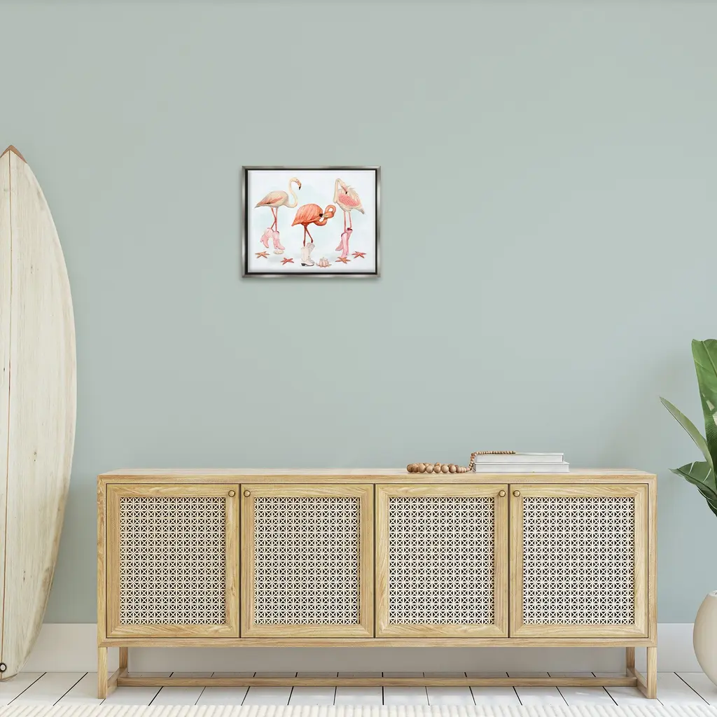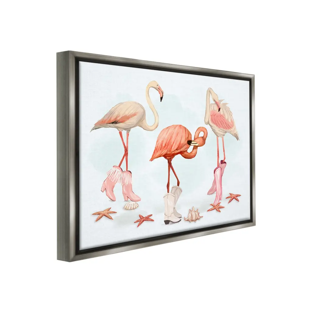 Elevate your home or office to the next level with Stupell Framed Floating Canvas Wall Art. Our premium hand-stretched canvas is mounted securely into a sturdy lightweight frame. The museum-style gap between the wrapped canvas and the box frame gives the illusion of floating artwork. Stupell Wall Art is made in the USA.Features: Dimensions: 21 x 1.7 x 17 Frame, 20 x 1.5 x 16 Canvas ArtFloating Frame Canvas Products are available in sizes 21"x17" and 31"x25". All Floating Frame Canvas Products have a 1.7" Depth.Wall Art is Ready to Hang with Hardware Free Hanging. No Installation required. For Easy Set Up Lean or Layer Artwork on Shelf or Against Wall. Artwork is Permently Fixed into the Frame.Our elevated 1.7" Thick Floating Frame is the perfect complement to our canvas style Wall Art. We use only the highest quality inks in house with industry leading printing solutions. Canvas is hand stretched over a durable wood foundation and then mounted securly into a Modern Box Frame. Made in the USA.Artwork Relates To: Animal, Bird, Flamingo, Cowgirl, Cowboy Boots, Seashell, Conch, StarfishDesign by Ziwei Li