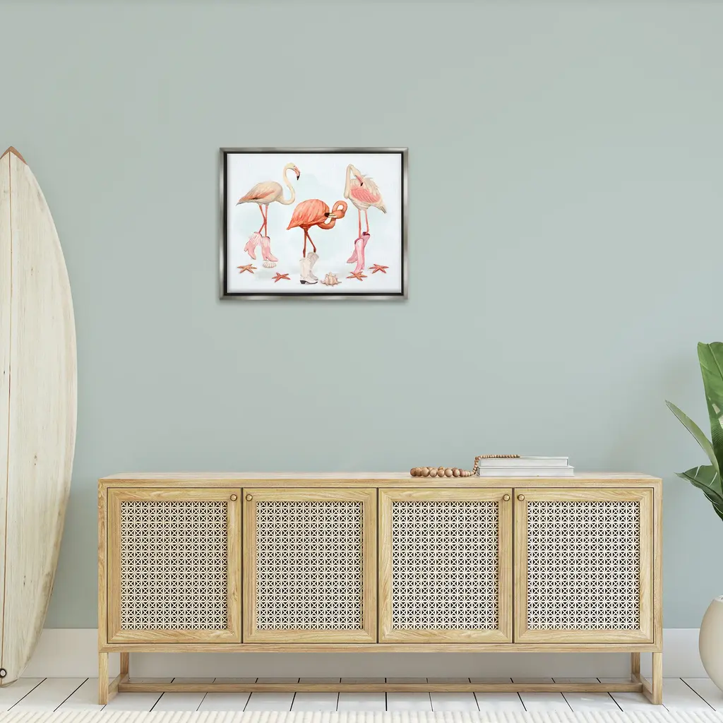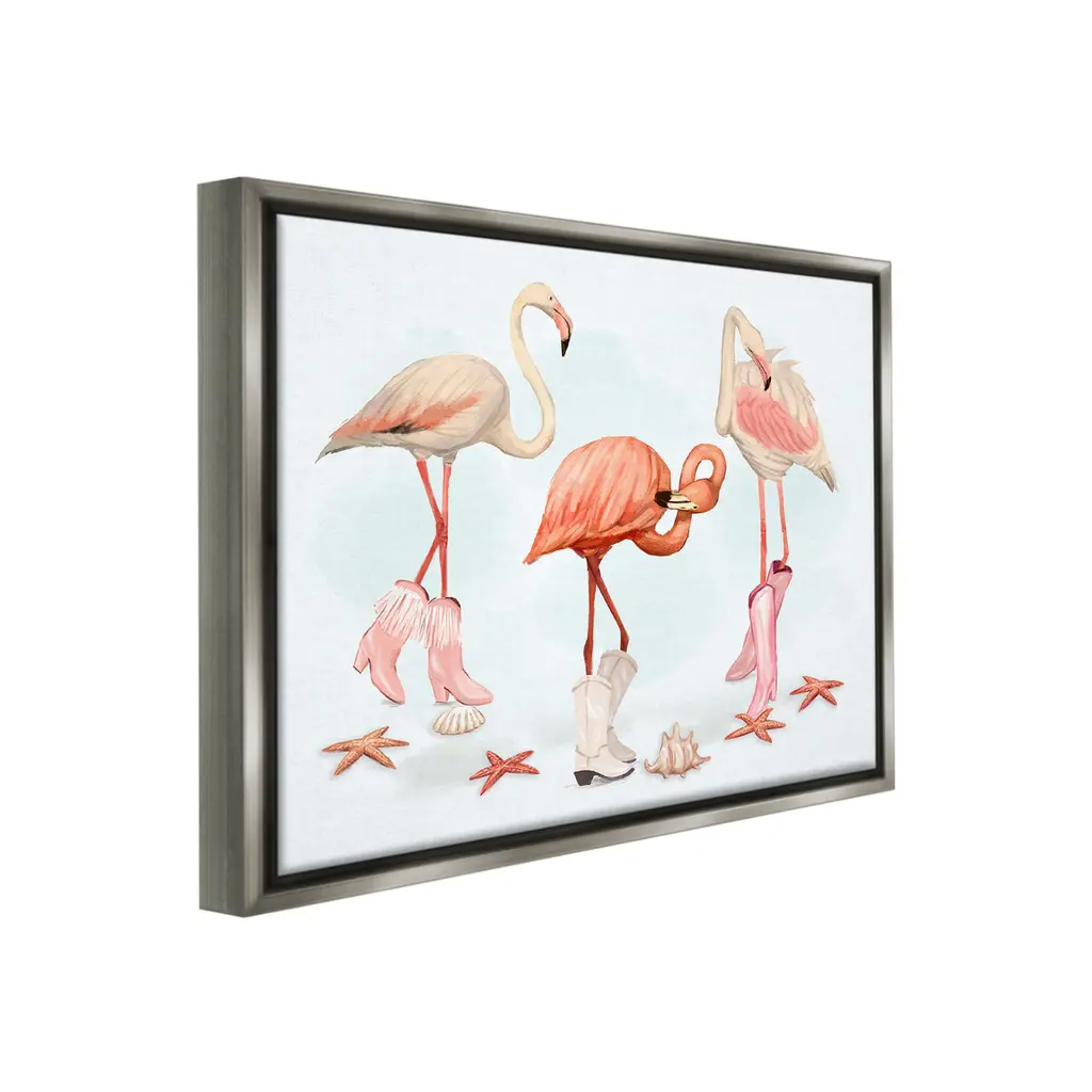 Elevate your home or office to the next level with Stupell Framed Floating Canvas Wall Art. Our premium hand-stretched canvas is mounted securely into a sturdy lightweight frame. The museum-style gap between the wrapped canvas and the box frame gives the illusion of floating artwork. Stupell Wall Art is made in the USA.Features: Dimensions: 21 x 1.7 x 17 Frame, 20 x 1.5 x 16 Canvas ArtFloating Frame Canvas Products are available in sizes 21"x17" and 31"x25". All Floating Frame Canvas Products have a 1.7" Depth.Wall Art is Ready to Hang with Hardware Free Hanging. No Installation required. For Easy Set Up Lean or Layer Artwork on Shelf or Against Wall. Artwork is Permently Fixed into the Frame.Our elevated 1.7" Thick Floating Frame is the perfect complement to our canvas style Wall Art. We use only the highest quality inks in house with industry leading printing solutions. Canvas is hand stretched over a durable wood foundation and then mounted securly into a Modern Box Frame. Made in the USA.Artwork Relates To: Animal, Bird, Flamingo, Cowgirl, Cowboy Boots, Seashell, Conch, StarfishDesign by Ziwei Li