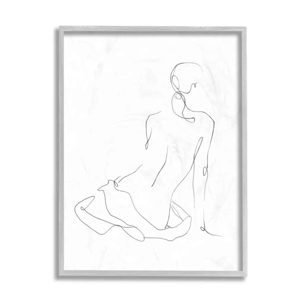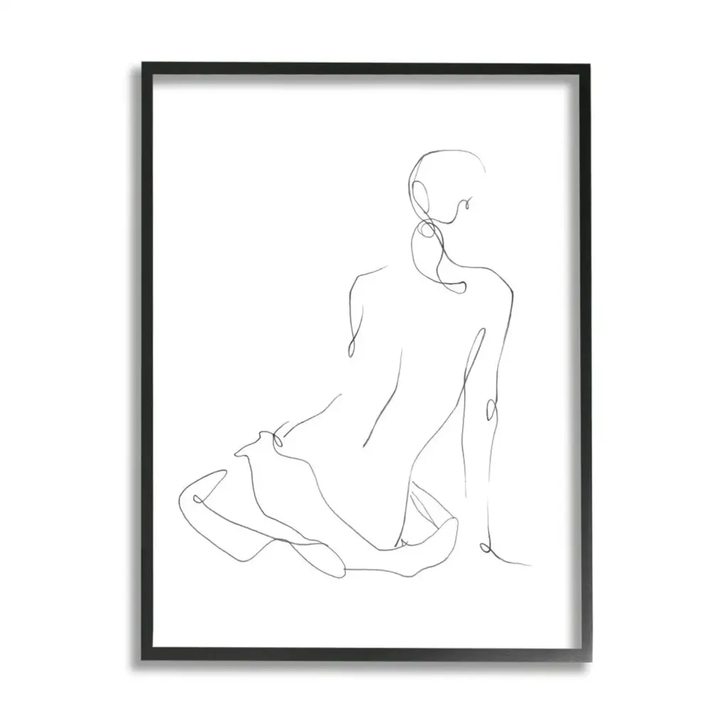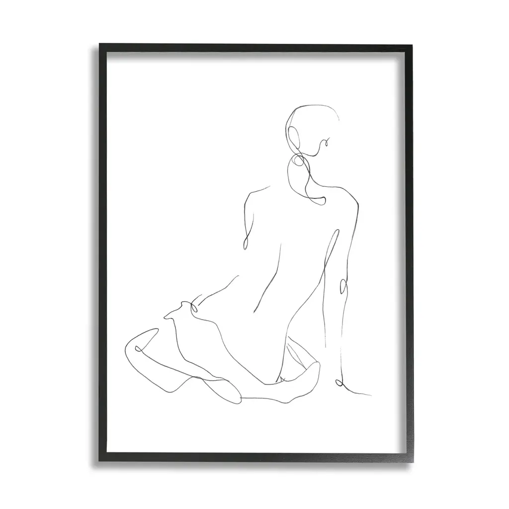 Stupell Minimal Female Gesture Linework Figure Sketch Framed Wall Art - 11 X 14 - Black