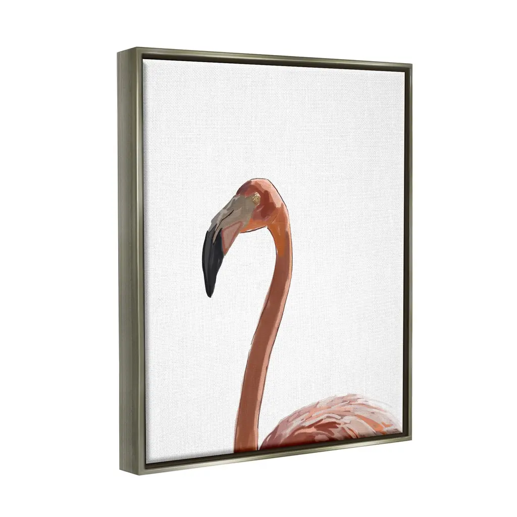 Elevate your home or office to the next level with Stupell Framed Floating Canvas Wall Art. Our premium hand-stretched canvas is mounted securely into a sturdy lightweight frame. The museum-style gap between the wrapped canvas and the box frame gives the illusion of floating artwork. Stupell Wall Art is made in the USA.Features: Dimensions: 17 x 1.7 x 21 Frame, 16 x 1.5 x 20 Canvas ArtFloating Frame Sizes Include Standard: 17 x 1.7 x 21 Oversized: 25 x 1.7 x 31Wall Art is Ready to Hang with Hardware Free Hanging. No installation required. For Easy Set Up Lean or Layer Artwork on Shelf or Against Wall.Our elevated 1.7" Thick Floating Frame is the perfect complement to our canvas style Wall Art. We use only the highest quality inks in house with industry leading printing solutions. Canvas is hand stretched over a durable wood foundation and then mounted securly into a Modern Box Frame. Made in the USA.Artwork Relates To: Animal, Beak, Bird, Flamingo, MinimalDesign by Amelia Noyes