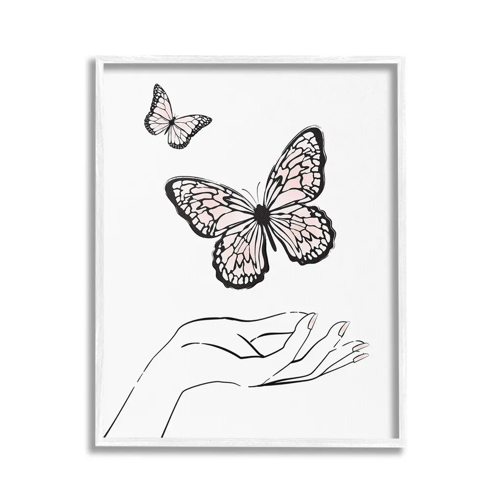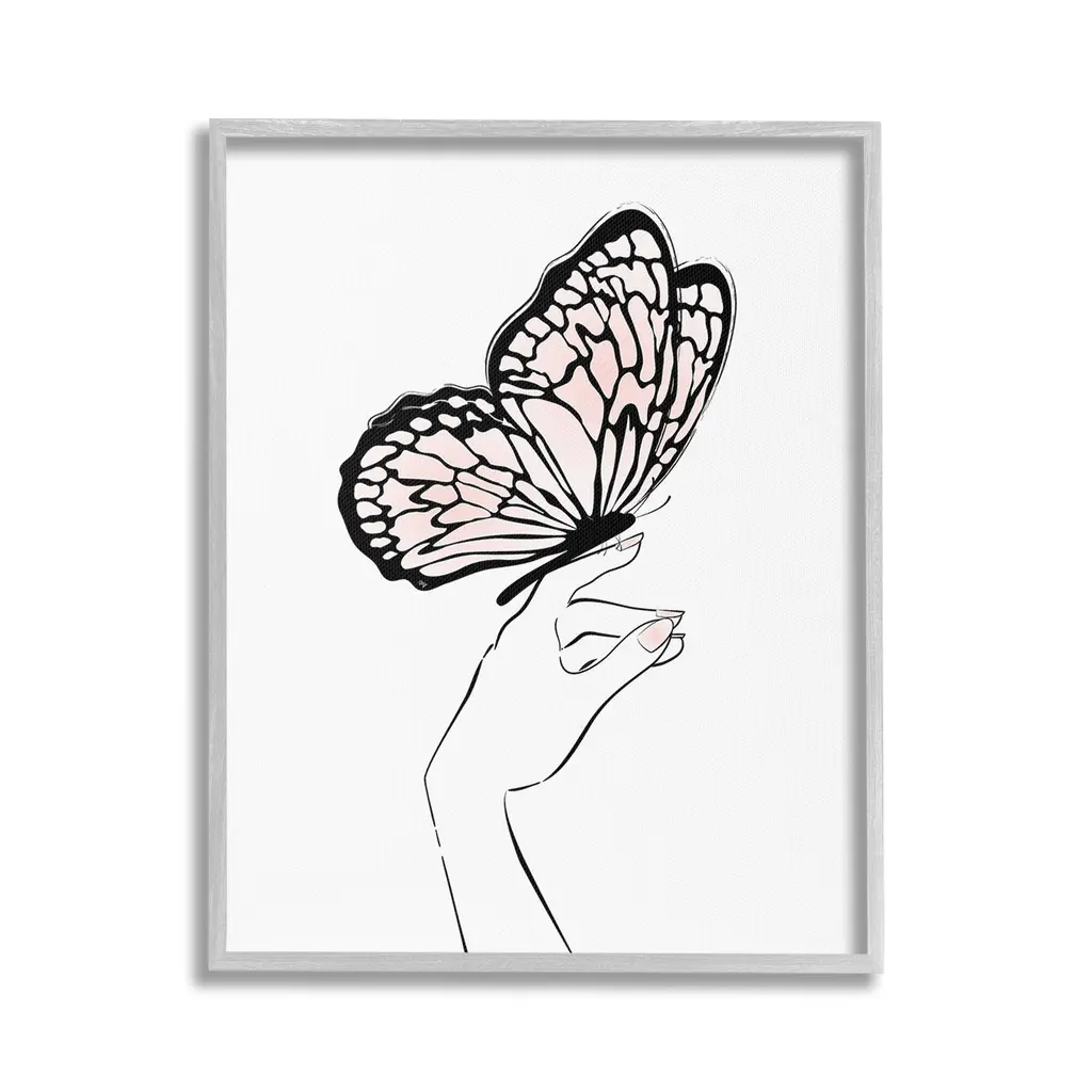 Elevate your home or office to the next level with Stupell Framed Floating Canvas Wall Art. Our premium hand-stretched canvas is mounted securely into a sturdy lightweight frame. The museum-style gap between the wrapped canvas and the box frame gives the illusion of floating artwork. Stupell Wall Art is made in the USA.Features: Dimensions: 17 x 1.7 x 21 Frame, 16 x 1.5 x 20 Canvas ArtFloating Frame Canvas Products are available in sizes 17"x21" and 25"x31". All Floating Frame Canvas Products have a 1.7" Depth.Wall Art is Ready to Hang with Hardware Free Hanging. No Installation required. For Easy Set Up Lean or Layer Artwork on Shelf or Against Wall. Artwork is Permently Fixed into the Frame.Our elevated 1.7" Thick Floating Frame is the perfect complement to our canvas style Wall Art. We use only the highest quality inks in house with industry leading printing solutions. Canvas is hand stretched over a durable wood foundation and then mounted securly into a Modern Box Frame. Made in the USA.Artwork Relates To: Animal, Butterfly, Bug, Insect, Hand, Pastel, Pink, Minimal, GlamDesign by Martina Pavlova