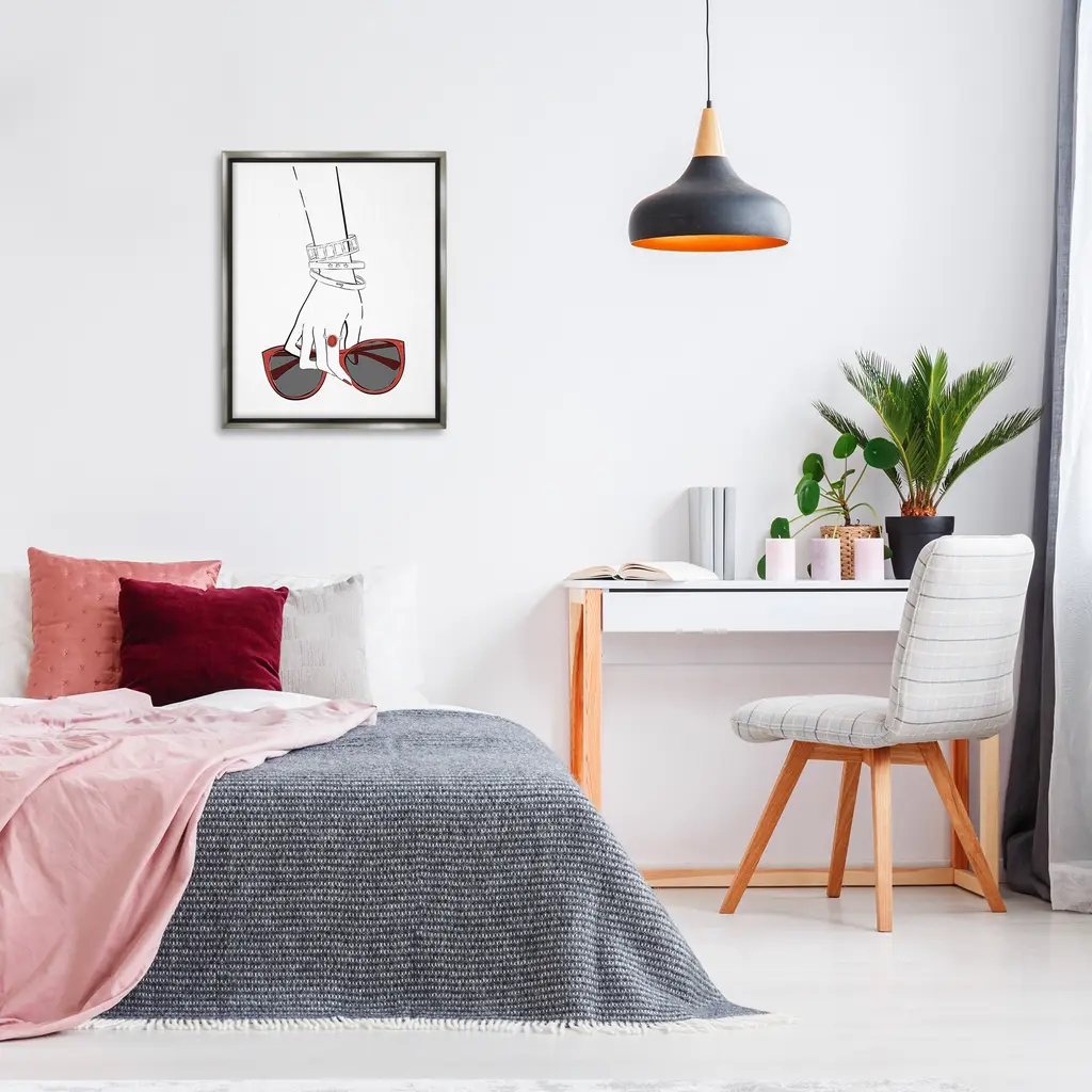 Elevate your home or office to the next level with Stupell Framed Floating Canvas Wall Art. Our premium hand-stretched canvas is mounted securely into a sturdy lightweight frame. The museum-style gap between the wrapped canvas and the box frame gives the illusion of floating artwork. Stupell Wall Art is made in the USA.Features: Dimensions: 17 x 1.7 x 21 Frame, 16 x 1.5 x 20 Canvas ArtFloating Frame Canvas Products are available in sizes 17"x21" and 25"x31". All Floating Frame Canvas Products have a 1.7" Depth.Wall Art is Ready to Hang with Hardware Free Hanging. No Installation required. For Easy Set Up Lean or Layer Artwork on Shelf or Against Wall. Artwork is Permently Fixed into the Frame.Our elevated 1.7" Thick Floating Frame is the perfect complement to our canvas style Wall Art. We use only the highest quality inks in house with industry leading printing solutions. Canvas is hand stretched over a durable wood foundation and then mounted securly into a Modern Box Frame. Made in the USA.Artwork Relates To: Sunglasses, Glam, Fashion, Bracelet, Modern, Minimal, Hand, Woman, FemaleDesign by Martina Pavlova