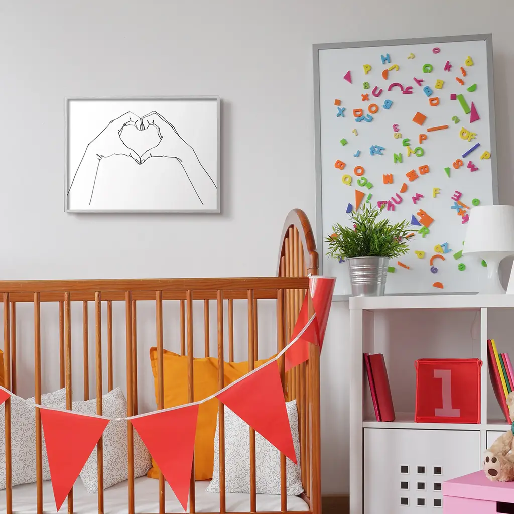 Stupell Minimal Heart Shaped Hand Pose Black White Framed Wall Art - 16 X 20 - Grey