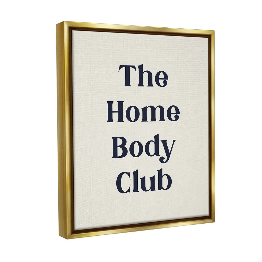Elevate your home or office to the next level with Stupell Framed Floating Canvas Wall Art. Our premium hand-stretched canvas is mounted securely into a sturdy lightweight frame. The museum-style gap between the wrapped canvas and the box frame gives the illusion of floating artwork. Stupell Wall Art is made in the USA.Features: Dimensions: 17 x 1.7 x 21 Frame, 16 x 1.5 x 20 Canvas ArtFloating Frame Canvas Products are available in sizes 17"x21" and 25"x31". All Floating Frame Canvas Products have a 1.7" Depth.Wall Art is Ready to Hang with Hardware Free Hanging. No Installation required. For Easy Set Up Lean or Layer Artwork on Shelf or Against Wall. Artwork is Permently Fixed into the Frame.Our elevated 1.7" Thick Floating Frame is the perfect complement to our canvas style Wall Art. We use only the highest quality inks in house with industry leading printing solutions. Canvas is hand stretched over a durable wood foundation and then mounted securly into a Modern Box Frame. Made in the USA.Artwork Relates To: Phrase, Minimal, Introvert, Traditional, The Home Body ClubDesign by Lil' Rue