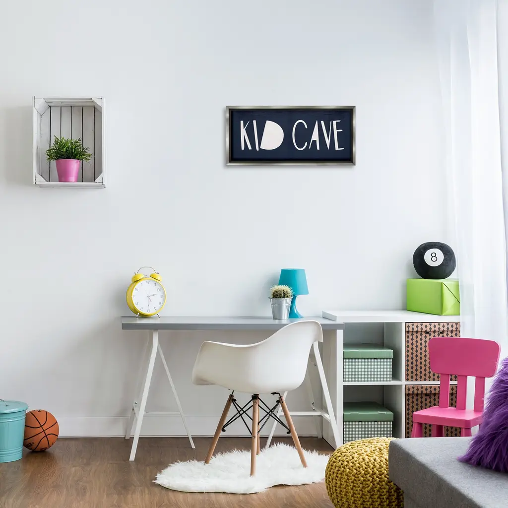 Stupell Minimal Kid Cave Sign Framed Floater Canvas Wall Art Design By Daphne Polselli - 25 X 11 - Grey