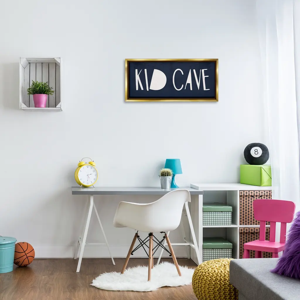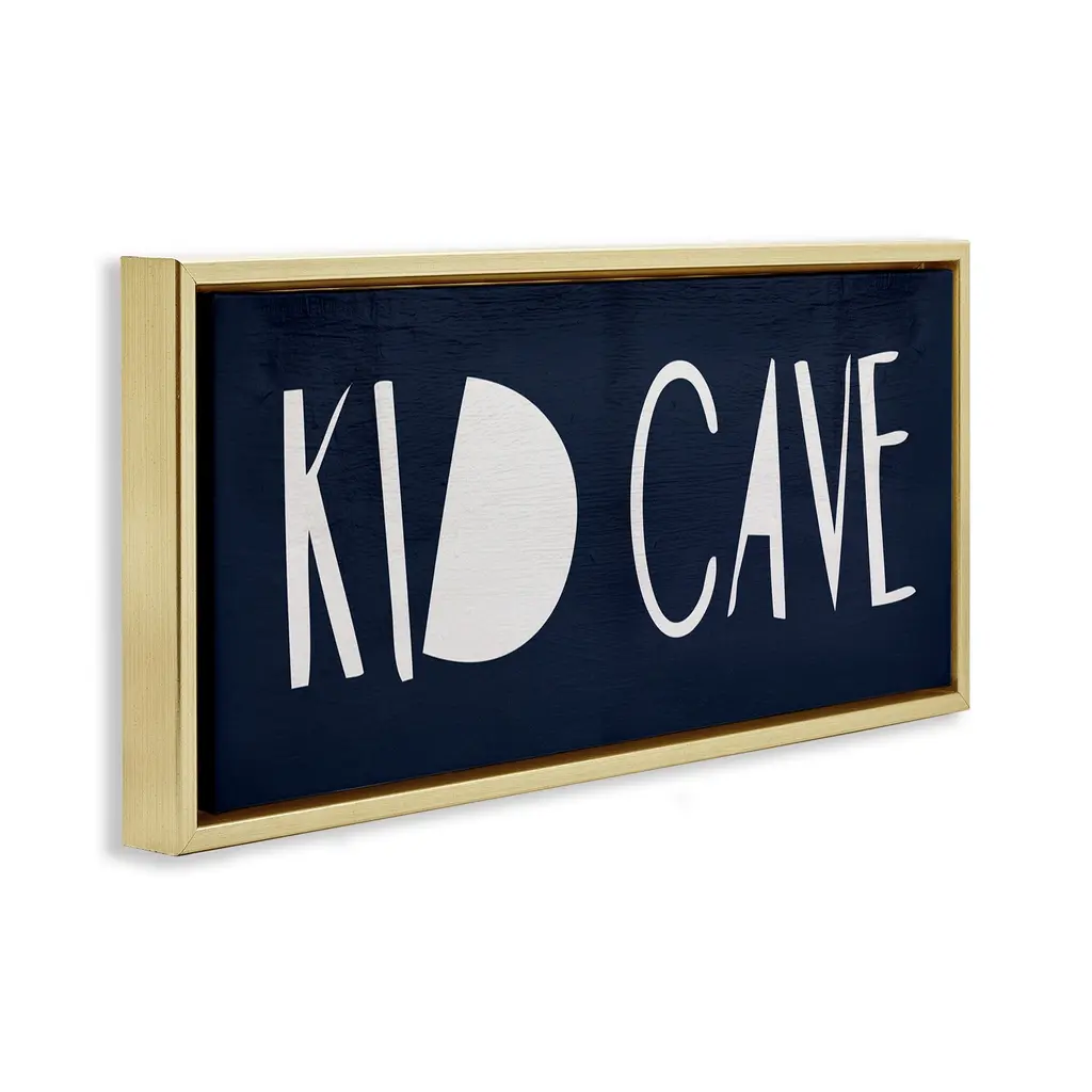 Stupell Minimal Kid Cave Sign Framed Floater Canvas Wall Art Design By Daphne Polselli - 31 X 14 - Gold