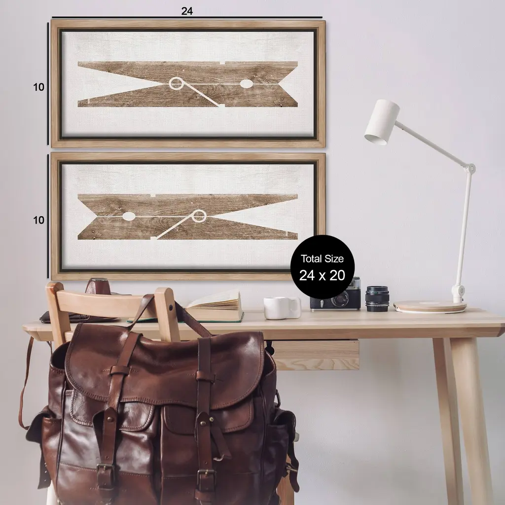 Elevate your home or office to the next level with Stupell Framed Floating Canvas Wall Art. Our premium hand-stretched canvas is mounted securely into a sturdy lightweight frame. The museum-style gap between the wrapped canvas and the box frame gives the illusion of floating artwork. Stupell Wall Art is made in the USA.Features: Dimensions: 2 Piece Set, Each Frame is 25 x 1.7 x 11Two Piece Floating Frame Canvas Products are available as 25"x11" or 31"x14" Panels. All Floating Frame Canvas Products have a 1.7" Depth.Wall Art is Ready to Hang with Hardware Free Hanging. No Installation required. For Easy Set Up Lean or Layer Artwork on Shelf or Against Wall. Artwork is Permently Fixed into the Frame.Our elevated 1.7" Thick Floating Frame is the perfect complement to our canvas style Wall Art. We use only the highest quality inks in house with industry leading printing solutions. Canvas is hand stretched over a durable wood foundation and then mounted securly into a Modern Box Frame. Made in the USA.Artwork Relates To: Laundry, Rustic, Country, Farmhouse, ClothespinDesign by Daphne Polselli