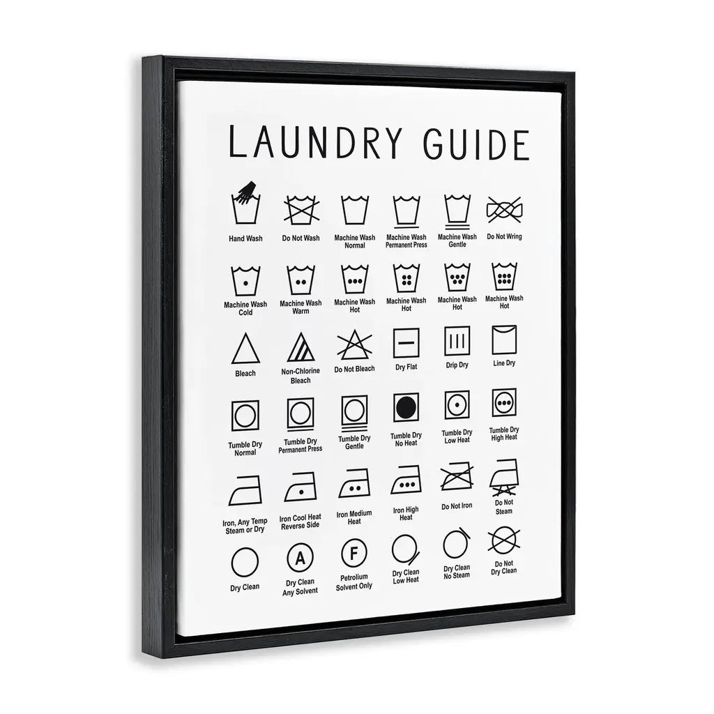 Stupell Minimal Laundry Guide Chart Framed Floater Canvas Wall Art Design By Lettered And Lined - 25 X 31 - Black