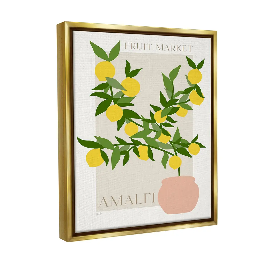 Elevate your home or office to the next level with Stupell Framed Floating Canvas Wall Art. Our premium hand-stretched canvas is mounted securely into a sturdy lightweight frame. The museum-style gap between the wrapped canvas and the box frame gives the illusion of floating artwork. Stupell Wall Art is made in the USA.Features: Dimensions: 17 x 1.7 x 21 Frame, 16 x 1.5 x 20 Canvas ArtFloating Frame Canvas Products are available in sizes 17"x21" and 25"x31". All Floating Frame Canvas Products have a 1.7" Depth.Wall Art is Ready to Hang with Hardware Free Hanging. No Installation required. For Easy Set Up Lean or Layer Artwork on Shelf or Against Wall. Artwork is Permently Fixed into the Frame.Our elevated 1.7" Thick Floating Frame is the perfect complement to our canvas style Wall Art. We use only the highest quality inks in house with industry leading printing solutions. Canvas is hand stretched over a durable wood foundation and then mounted securly into a Modern Box Frame. Made in the USA.Artwork Relates To: Citrus, Food, Fruit, Lemon, Plant, Produce, Country, Kitchen, Modern, MinimalDesign by Natalie Carpentieri
