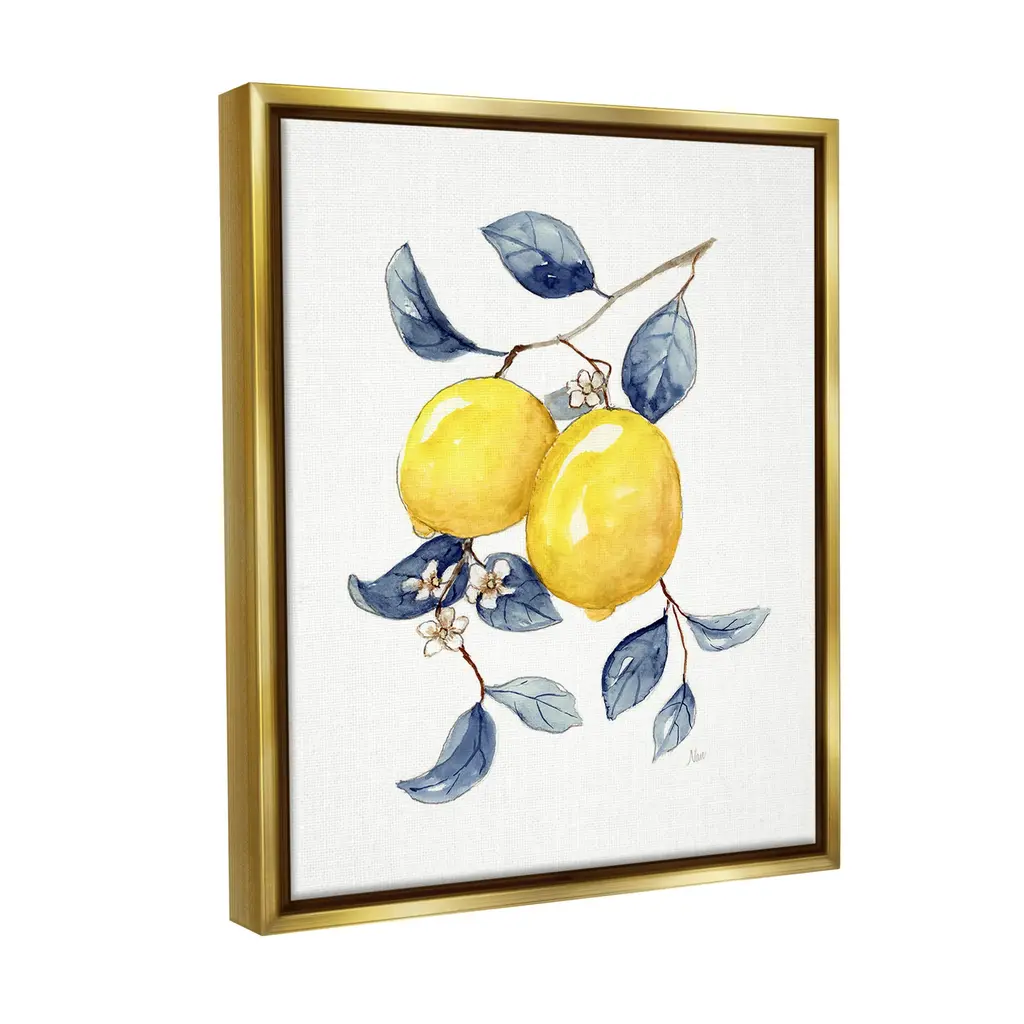 Elevate your home or office to the next level with Stupell Framed Floating Canvas Wall Art. Our premium hand-stretched canvas is mounted securely into a sturdy lightweight frame. The museum-style gap between the wrapped canvas and the box frame gives the illusion of floating artwork. Stupell Wall Art is made in the USA.Features: Dimensions: 17 x 1.7 x 21 Frame, 16 x 1.5 x 20 Canvas ArtFloating Frame Canvas Products are available in sizes 17"x21" and 25"x31". All Floating Frame Canvas Products have a 1.7" Depth.Wall Art is Ready to Hang with Hardware Free Hanging. No Installation required. For Easy Set Up Lean or Layer Artwork on Shelf or Against Wall. Artwork is Permently Fixed into the Frame.Our elevated 1.7" Thick Floating Frame is the perfect complement to our canvas style Wall Art. We use only the highest quality inks in house with industry leading printing solutions. Canvas is hand stretched over a durable wood foundation and then mounted securly into a Modern Box Frame. Made in the USA.Artwork Relates To: Citrus, Food, Fruit, Lemon, Plant, Produce, Country, Kitchen, MinimalDesign by Nan