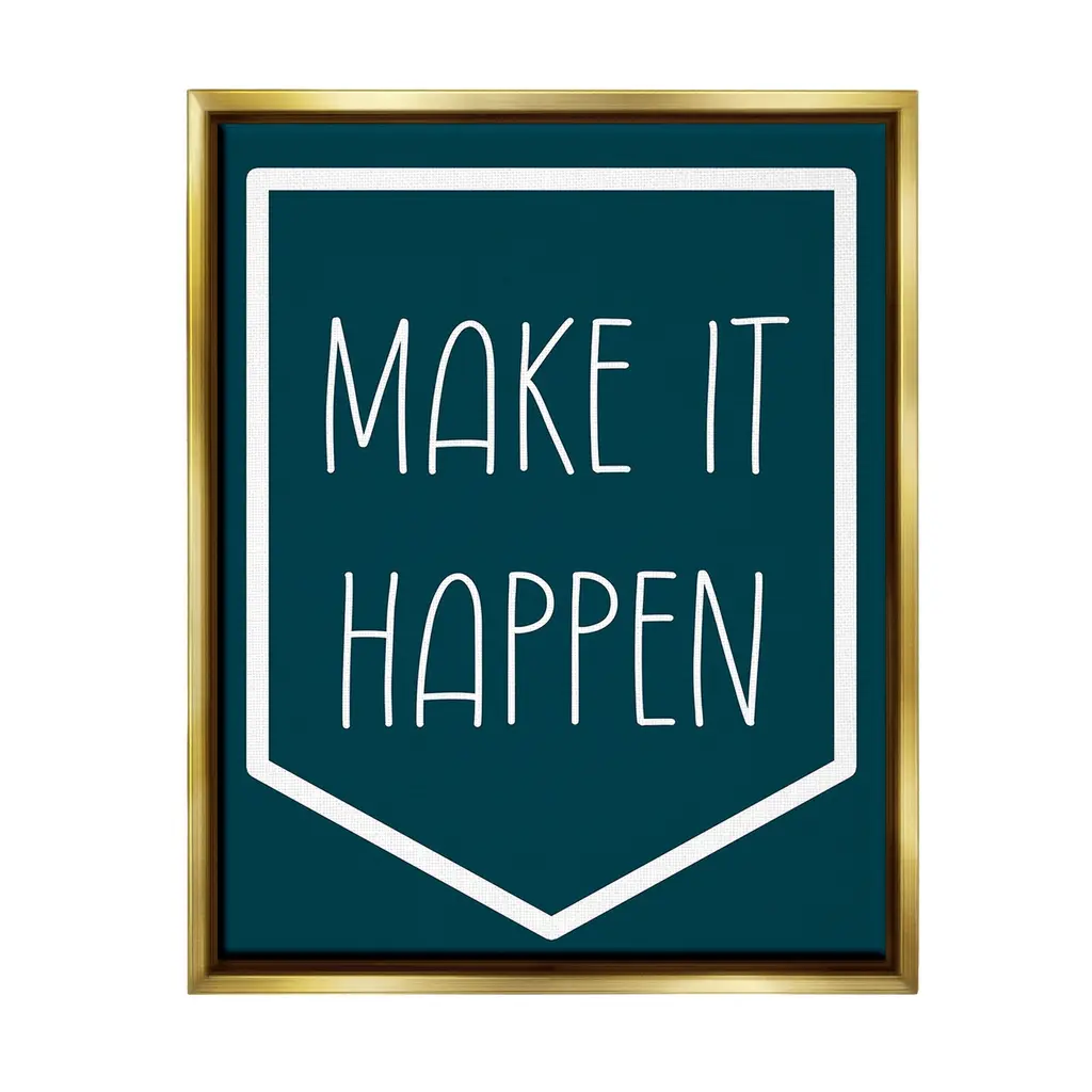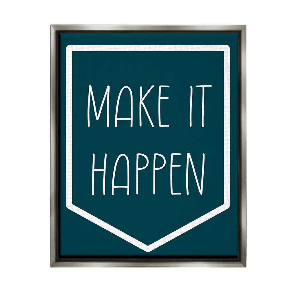 Elevate your home or office to the next level with Stupell Framed Floating Canvas Wall Art. Our premium hand-stretched canvas is mounted securely into a sturdy lightweight frame. The museum-style gap between the wrapped canvas and the box frame gives the illusion of floating artwork. Stupell Wall Art is made in the USA.Features: Dimensions: 17 x 1.7 x 21 Frame, 16 x 1.5 x 20 Canvas ArtFloating Frame Canvas Products are available in sizes 17"x21" and 25"x31". All Floating Frame Canvas Products have a 1.7" Depth.Wall Art is Ready to Hang with Hardware Free Hanging. No Installation required. For Easy Set Up Lean or Layer Artwork on Shelf or Against Wall. Artwork is Permently Fixed into the Frame.Our elevated 1.7" Thick Floating Frame is the perfect complement to our canvas style Wall Art. We use only the highest quality inks in house with industry leading printing solutions. Canvas is hand stretched over a durable wood foundation and then mounted securly into a Modern Box Frame. Made in the USA.Artwork Relates To: Minimal, Inspirational, Motivational, Phrase, Make It HappenDesign by Lil' Rue