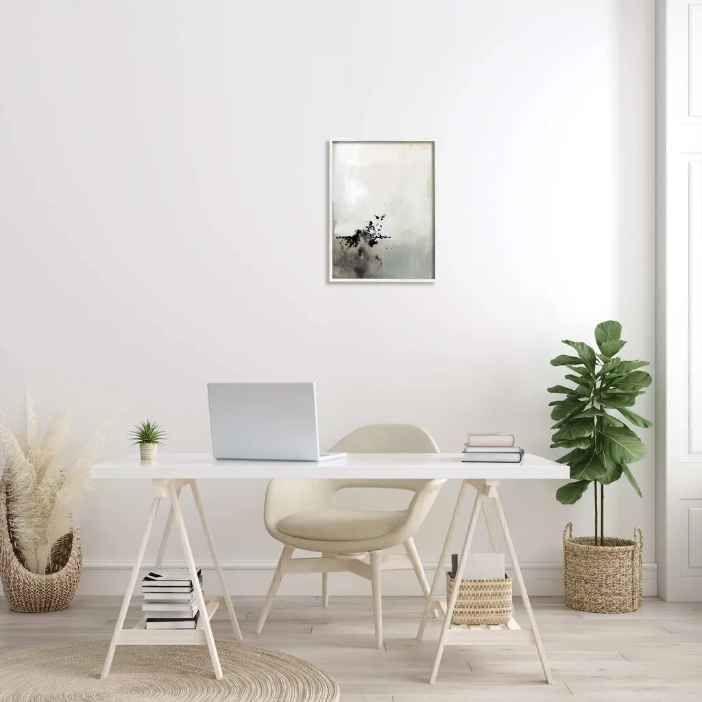 Stupell Minimal Neutral Abstract Painting Black Splatter Framed Wall Art - Grey - 16 X 20 - White