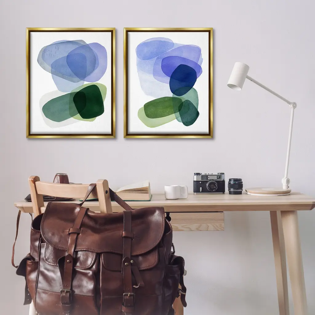 Elevate your home or office to the next level with Stupell Framed Floating Canvas Wall Art. Our premium hand-stretched canvas is mounted securely into a sturdy lightweight frame. The museum-style gap between the wrapped canvas and the box frame gives the illusion of floating artwork. Stupell Wall Art is made in the USA.Features: Dimensions: 2 Piece Set, Each Frame is 17 x 1.7 x 21Two Piece Floater Framed Canvas are available as 17x21 or 25x31 Panels. All Floater Frame Products have a 1.7" Depth.Wall Art is Ready to Hang with Hardware Free Hanging. No Installation required. For Easy Set Up Lean or Layer Artwork on Shelf or Against Wall. Artwork is Permently Fixed into the Frame.Our elevated 1.7" Thick Floating Frame is the perfect complement to our canvas style Wall Art. We use only the highest quality inks in house with industry leading printing solutions. Canvas is hand stretched over a durable wood foundation and then mounted securly into a Modern Box Frame. Made in the USA.Artwork Relates To: Abstract, Modern, Contemporary, Shapes, MinimalDesign by Simone Christen