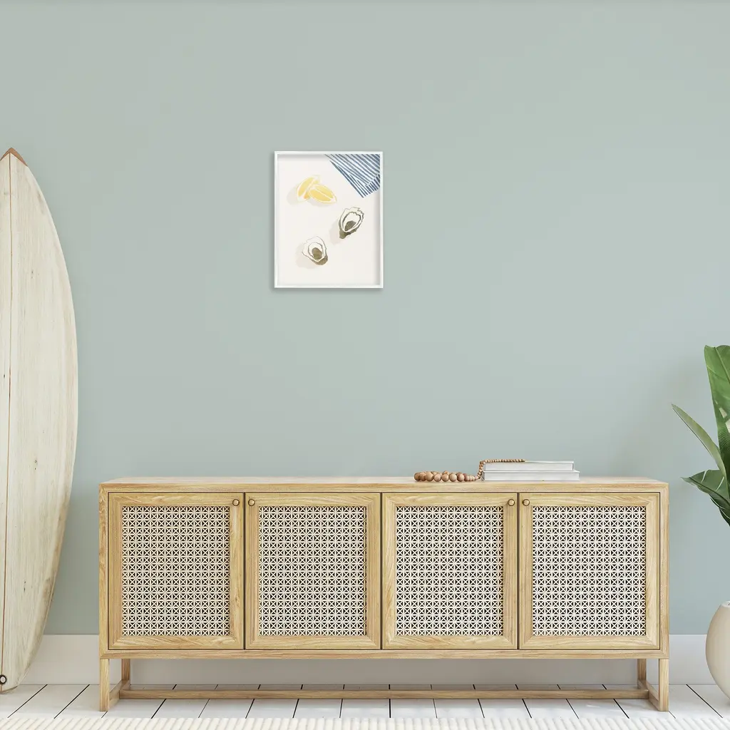 Add dimension to any room with our textured Framed Giclee Artwork. Our framed artwork is securely mounted into a 1.5-inch thick wood grain frame and ready to hang. Frames are available in three alluring styles: black, gray farmhouse and white. In addition, you should check out our oversized options if you want a statement piece. Stupell Wall Art is made in the USA.Features: Dimensions: 11 x 1.5 x 14 FramedFramed Giclee Products are available in the sizes 11"x14", 16"x20" or 24"x30". All Framed Giclee Products have a 1.5" Depth. Wall Art is Ready to Hang with Hardware Free Hanging. No installation required. For Easy Set Up Lean or Layer Artwork on Shelf or Against Wall.Our giclée prints are carefully mounted on a durable MDF backing, and then perfectly finished in a 1.5 inch thick woodgrain frame. Mounted frame colors include black, gray farmhouse and white. Made In USA.Artwork Relates To: Citrus, Food, Fruit, Lemon, Animal, Sea Life, Seafood, OysterDesign by Yuyu Pont
