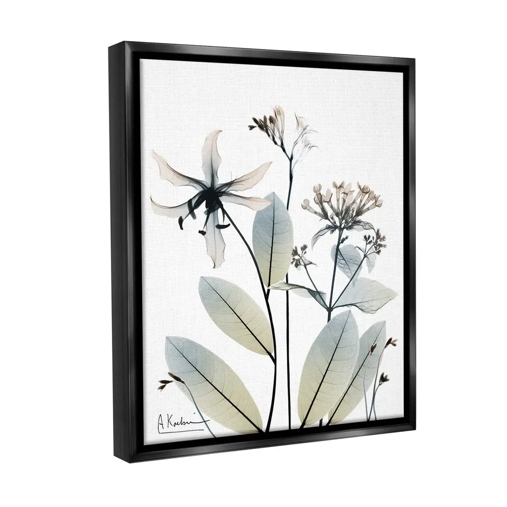 Elevate your home or office to the next level with Stupell Framed Floating Canvas Wall Art. Our premium hand-stretched canvas is mounted securely into a sturdy lightweight frame. The museum-style gap between the wrapped canvas and the box frame gives the illusion of floating artwork. Stupell Wall Art is made in the USA.Features: Dimensions: 17 x 1.7 x 21 Frame, 16 x 1.5 x 20 Canvas ArtFloating Frame Canvas Products are available in sizes 17"x21" and 25"x31". All Floating Frame Canvas Products have a 1.7" Depth.Wall Art is Ready to Hang with Hardware Free Hanging. No Installation required. For Easy Set Up Lean or Layer Artwork on Shelf or Against Wall. Artwork is Permently Fixed into the Frame.Our elevated 1.7" Thick Floating Frame is the perfect complement to our canvas style Wall Art. We use only the highest quality inks in house with industry leading printing solutions. Canvas is hand stretched over a durable wood foundation and then mounted securly into a Modern Box Frame. Made in the USA.Artwork Relates To: Flower, Plant, Anther, Petal, Minimal, Modern, Abstract, Leaf, BotanicalDesign by Albert Koetsier