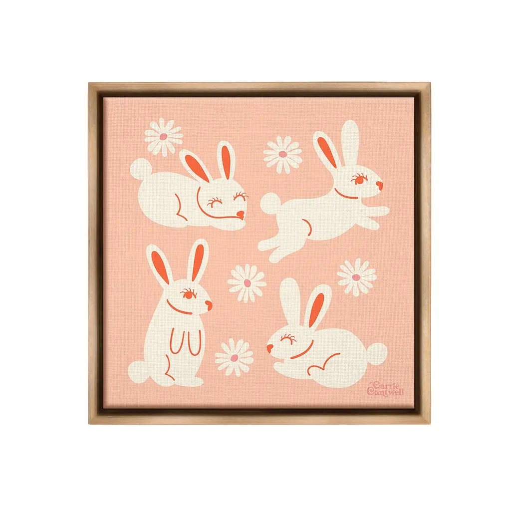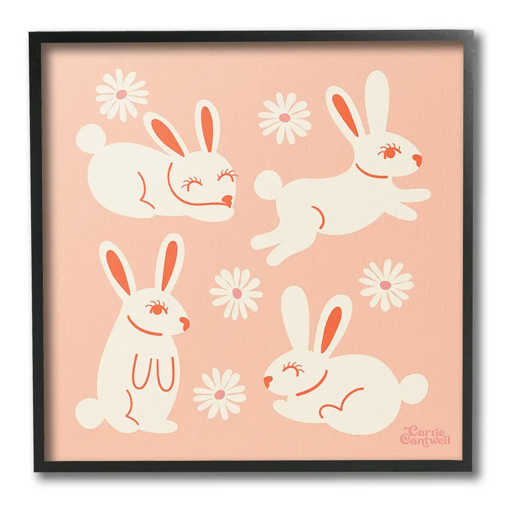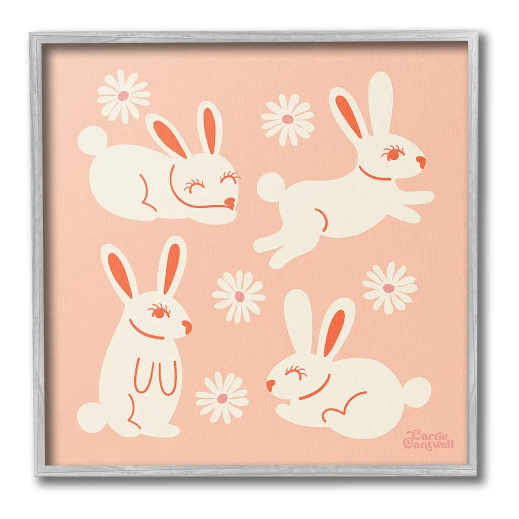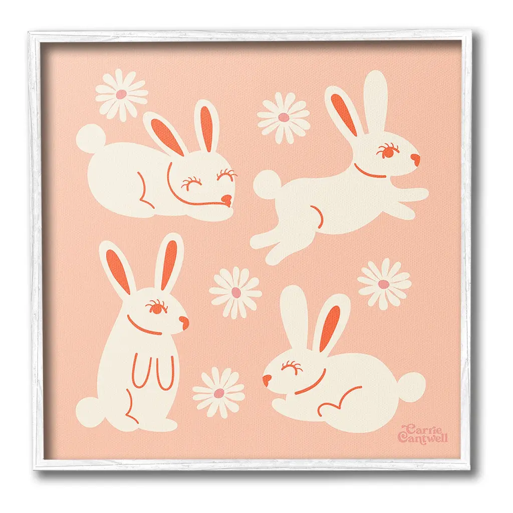 Elevate your home or office to the next level with Stupell Framed Floating Canvas Wall Art. Our premium hand-stretched canvas is mounted securely into a sturdy lightweight frame. The museum-style gap between the wrapped canvas and the box frame gives the illusion of floating artwork. Stupell Wall Art is made in the USA.Features: Dimensions: 18 x 1.7 x 18 Frame, 17 x 1.5 x 17 Canvas ArtFloating Frame Canvas Products are available in sizes 18"x18" and 25"x25". All Floating Frame Canvas Products have a 1.7" Depth.Wall Art is Ready to Hang with Hardware Free Hanging. No Installation required. For Easy Set Up Lean or Layer Artwork on Shelf or Against Wall. Artwork is Permently Fixed into the Frame.Our elevated 1.7" Thick Floating Frame is the perfect complement to our canvas style Wall Art. We use only the highest quality inks in house with industry leading printing solutions. Canvas is hand stretched over a durable wood foundation and then mounted securly into a Modern Box Frame. Made in the USA.Artwork Relates To: Animal, Mammal, Rabbit, Bunny, Pattern, Hare, Flower, Daisy, Floral, MinimalDesign by Carrie Cantwell