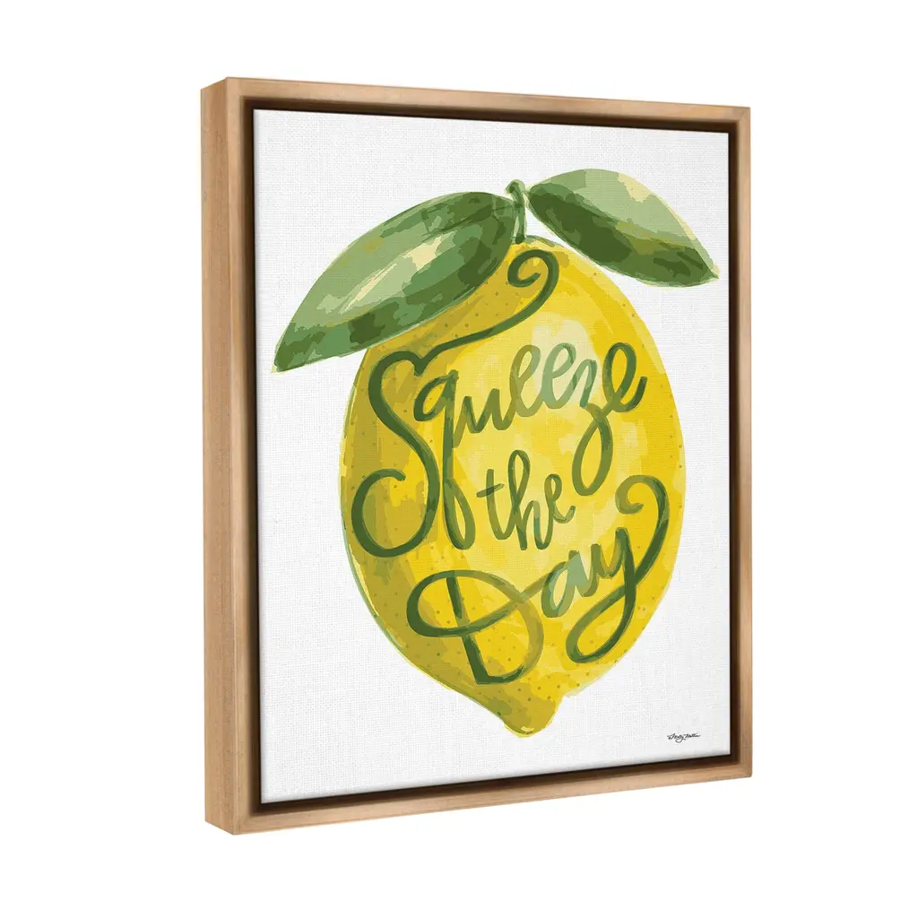 Elevate your home or office to the next level with Stupell Framed Floating Canvas Wall Art. Our premium hand-stretched canvas is mounted securely into a sturdy lightweight frame. The museum-style gap between the wrapped canvas and the box frame gives the illusion of floating artwork. Stupell Wall Art is made in the USA.Features: Dimensions: 17 x 1.7 x 21 Frame, 16 x 1.5 x 20 Canvas ArtFloating Frame Canvas Products are available in sizes 17"x21" and 25"x31". All Floating Frame Canvas Products have a 1.7" Depth.Wall Art is Ready to Hang with Hardware Free Hanging. No Installation required. For Easy Set Up Lean or Layer Artwork on Shelf or Against Wall. Artwork is Permently Fixed into the Frame.Our elevated 1.7" Thick Floating Frame is the perfect complement to our canvas style Wall Art. We use only the highest quality inks in house with industry leading printing solutions. Canvas is hand stretched over a durable wood foundation and then mounted securly into a Modern Box Frame. Made in the USA.Artwork Relates To: Citrus Fruit, Food, Fruit, Plant, Produce, Lemon, Squeeze The DayDesign by Molly Mattin