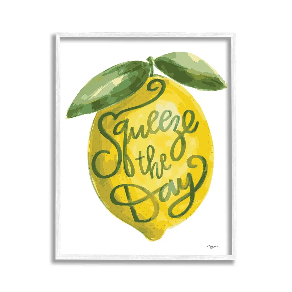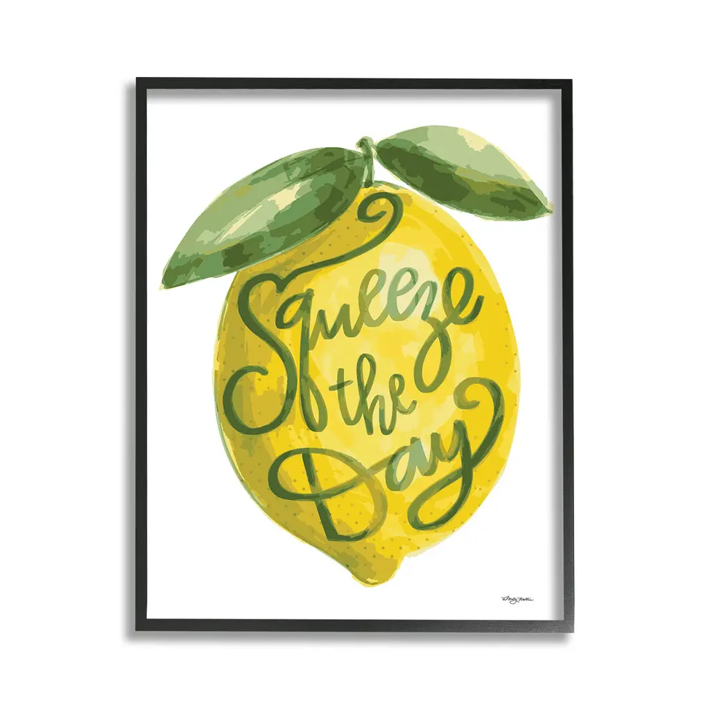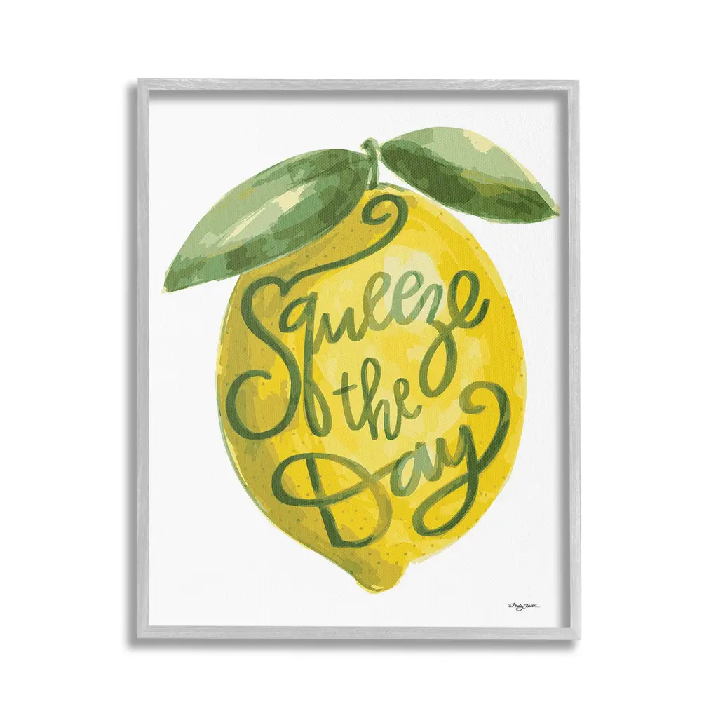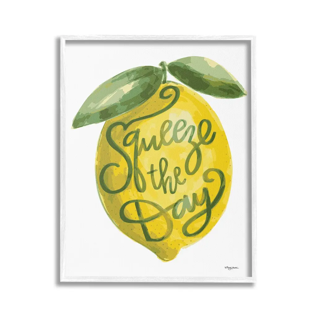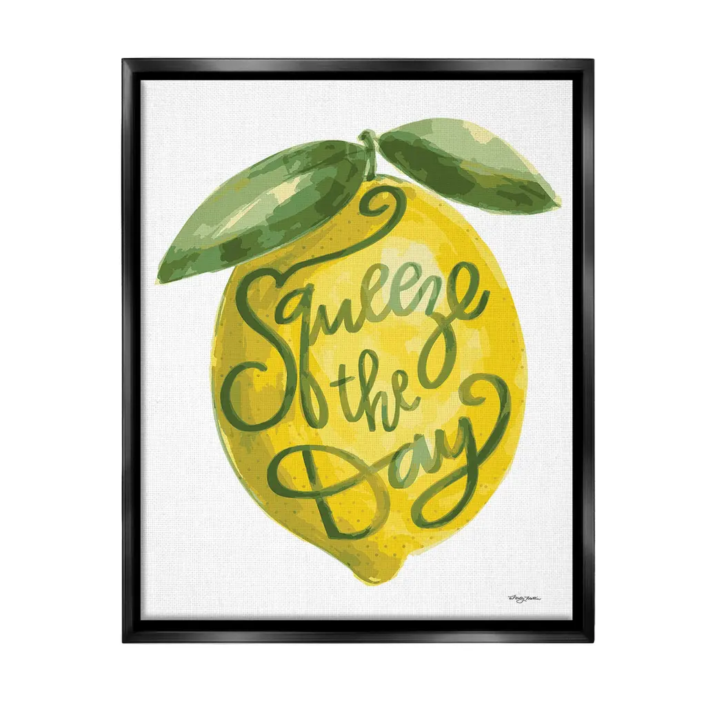 Elevate your home or office to the next level with Stupell Framed Floating Canvas Wall Art. Our premium hand-stretched canvas is mounted securely into a sturdy lightweight frame. The museum-style gap between the wrapped canvas and the box frame gives the illusion of floating artwork. Stupell Wall Art is made in the USA.Features: Dimensions: 17 x 1.7 x 21 Frame, 16 x 1.5 x 20 Canvas ArtFloating Frame Canvas Products are available in sizes 17"x21" and 25"x31". All Floating Frame Canvas Products have a 1.7" Depth.Wall Art is Ready to Hang with Hardware Free Hanging. No Installation required. For Easy Set Up Lean or Layer Artwork on Shelf or Against Wall. Artwork is Permently Fixed into the Frame.Our elevated 1.7" Thick Floating Frame is the perfect complement to our canvas style Wall Art. We use only the highest quality inks in house with industry leading printing solutions. Canvas is hand stretched over a durable wood foundation and then mounted securly into a Modern Box Frame. Made in the USA.Artwork Relates To: Citrus Fruit, Food, Fruit, Plant, Produce, Lemon, Squeeze The DayDesign by Molly Mattin