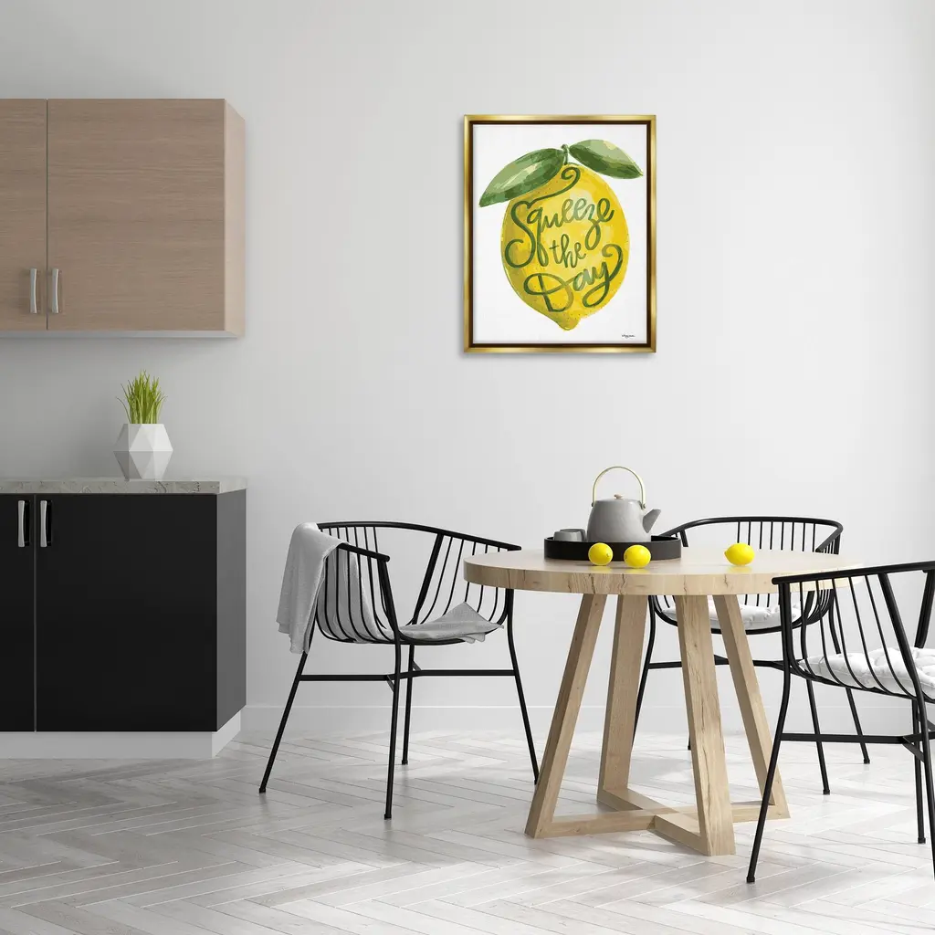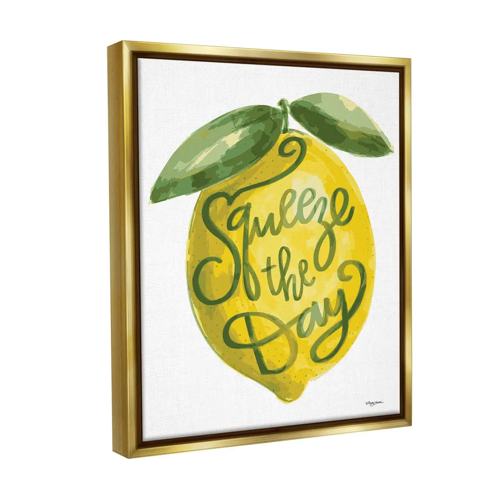 Elevate your home or office to the next level with Stupell Framed Floating Canvas Wall Art. Our premium hand-stretched canvas is mounted securely into a sturdy lightweight frame. The museum-style gap between the wrapped canvas and the box frame gives the illusion of floating artwork. Stupell Wall Art is made in the USA.Features: Dimensions: 17 x 1.7 x 21 Frame, 16 x 1.5 x 20 Canvas ArtFloating Frame Canvas Products are available in sizes 17"x21" and 25"x31". All Floating Frame Canvas Products have a 1.7" Depth.Wall Art is Ready to Hang with Hardware Free Hanging. No Installation required. For Easy Set Up Lean or Layer Artwork on Shelf or Against Wall. Artwork is Permently Fixed into the Frame.Our elevated 1.7" Thick Floating Frame is the perfect complement to our canvas style Wall Art. We use only the highest quality inks in house with industry leading printing solutions. Canvas is hand stretched over a durable wood foundation and then mounted securly into a Modern Box Frame. Made in the USA.Artwork Relates To: Citrus Fruit, Food, Fruit, Plant, Produce, Lemon, Squeeze The DayDesign by Molly Mattin