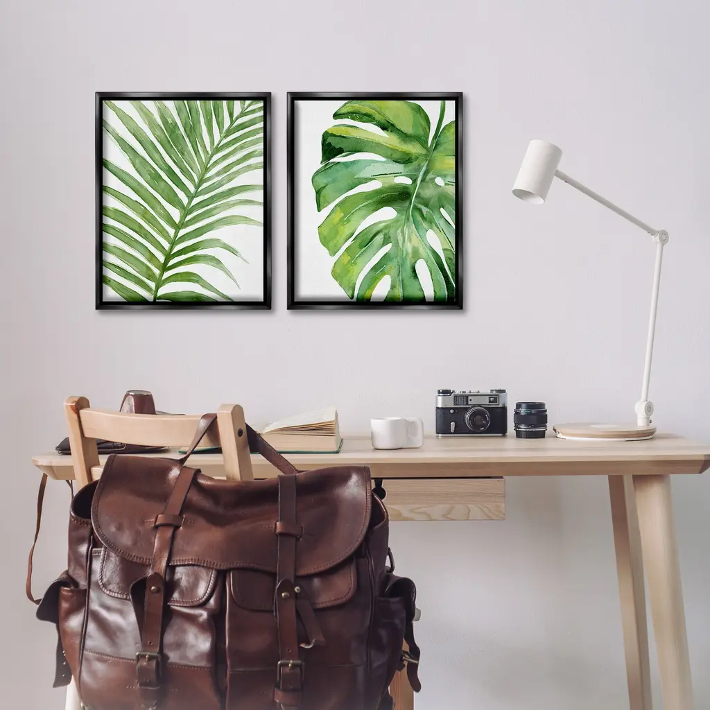 Elevate your home or office to the next level with Stupell Framed Floating Canvas Wall Art. Our premium hand-stretched canvas is mounted securely into a sturdy lightweight frame. The museum-style gap between the wrapped canvas and the box frame gives the illusion of floating artwork. Stupell Wall Art is made in the USA.Features: Dimensions: 2 Piece Set, Each Frame is 17 x 1.7 x 21Two Piece Floater Framed Canvas are available as 17x21 or 25x31 Panels. All Floater Frame Products have a 1.7" Depth.Wall Art is Ready to Hang with Hardware Free Hanging. No Installation required. For Easy Set Up Lean or Layer Artwork on Shelf or Against Wall. Artwork is Permently Fixed into the Frame.Our elevated 1.7" Thick Floating Frame is the perfect complement to our canvas style Wall Art. We use only the highest quality inks in house with industry leading printing solutions. Canvas is hand stretched over a durable wood foundation and then mounted securly into a Modern Box Frame. Made in the USA.Artwork Relates To: Plant, Leaf, Palm, Monstera, Botanical, Tropical, MinimalDesign by Carson Lyons