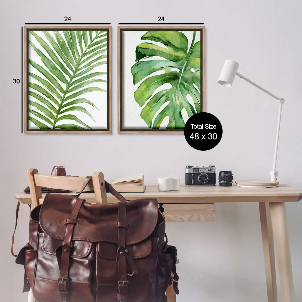 Elevate your home or office to the next level with Stupell Framed Floating Canvas Wall Art. Our premium hand-stretched canvas is mounted securely into a sturdy lightweight frame. The museum-style gap between the wrapped canvas and the box frame gives the illusion of floating artwork. Stupell Wall Art is made in the USA.Features: Dimensions: 2 Piece Set, Each Frame is 17 x 1.7 x 21Two Piece Floater Framed Canvas are available as 17x21 or 25x31 Panels. All Floater Frame Products have a 1.7" Depth.Wall Art is Ready to Hang with Hardware Free Hanging. No Installation required. For Easy Set Up Lean or Layer Artwork on Shelf or Against Wall. Artwork is Permently Fixed into the Frame.Our elevated 1.7" Thick Floating Frame is the perfect complement to our canvas style Wall Art. We use only the highest quality inks in house with industry leading printing solutions. Canvas is hand stretched over a durable wood foundation and then mounted securly into a Modern Box Frame. Made in the USA.Artwork Relates To: Plant, Leaf, Palm, Monstera, Botanical, Tropical, MinimalDesign by Carson Lyons