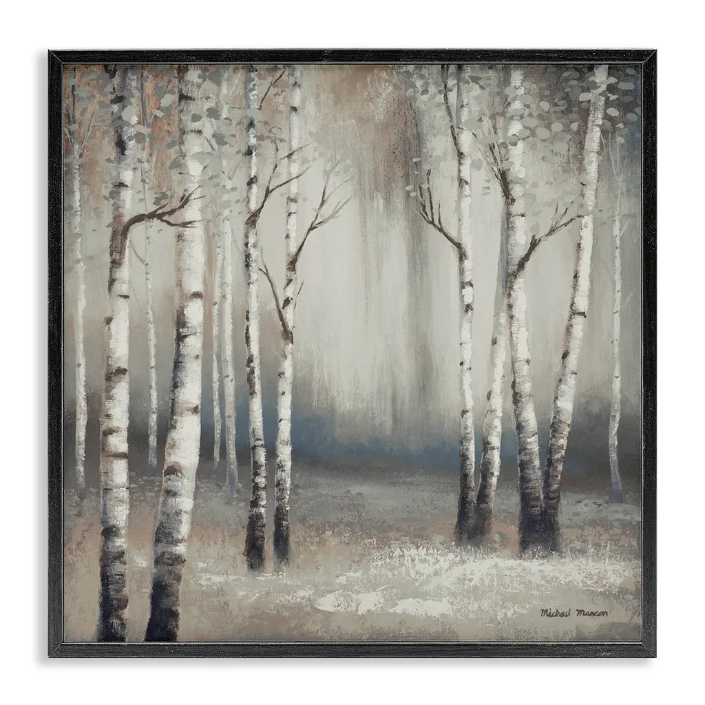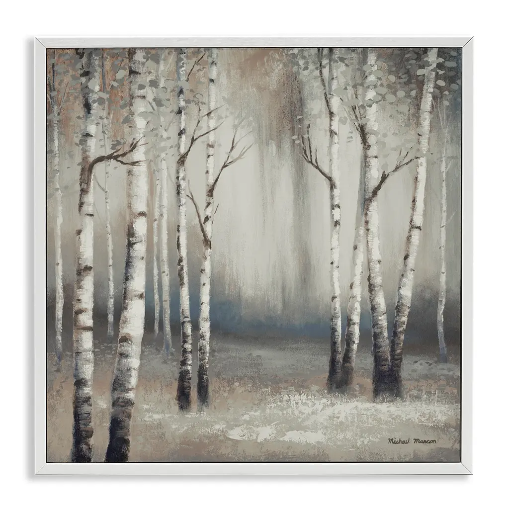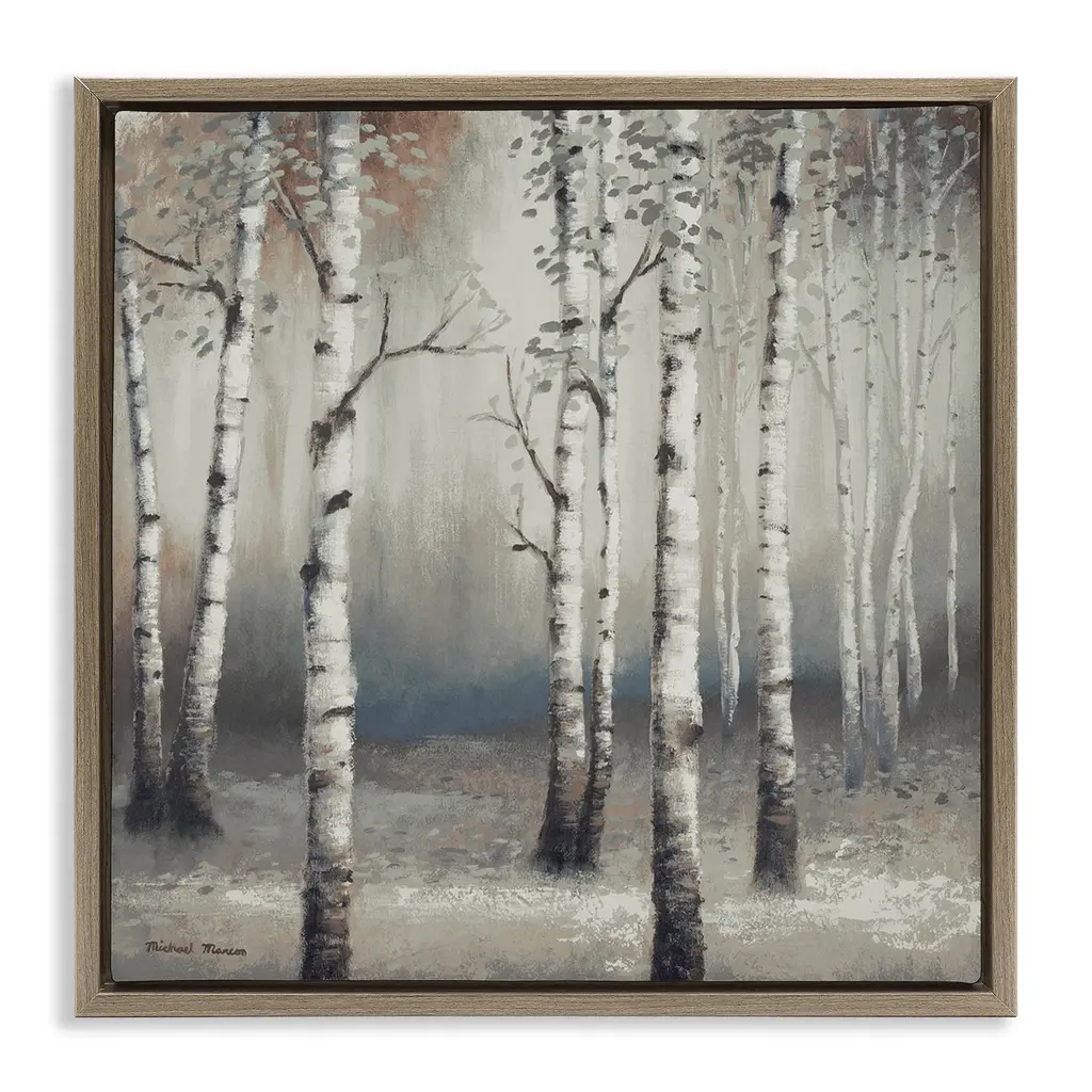 Stupell Misty Birch Tree Forest Muted Landscape Grey White Framed Wall Art - 17 X 17 - White
