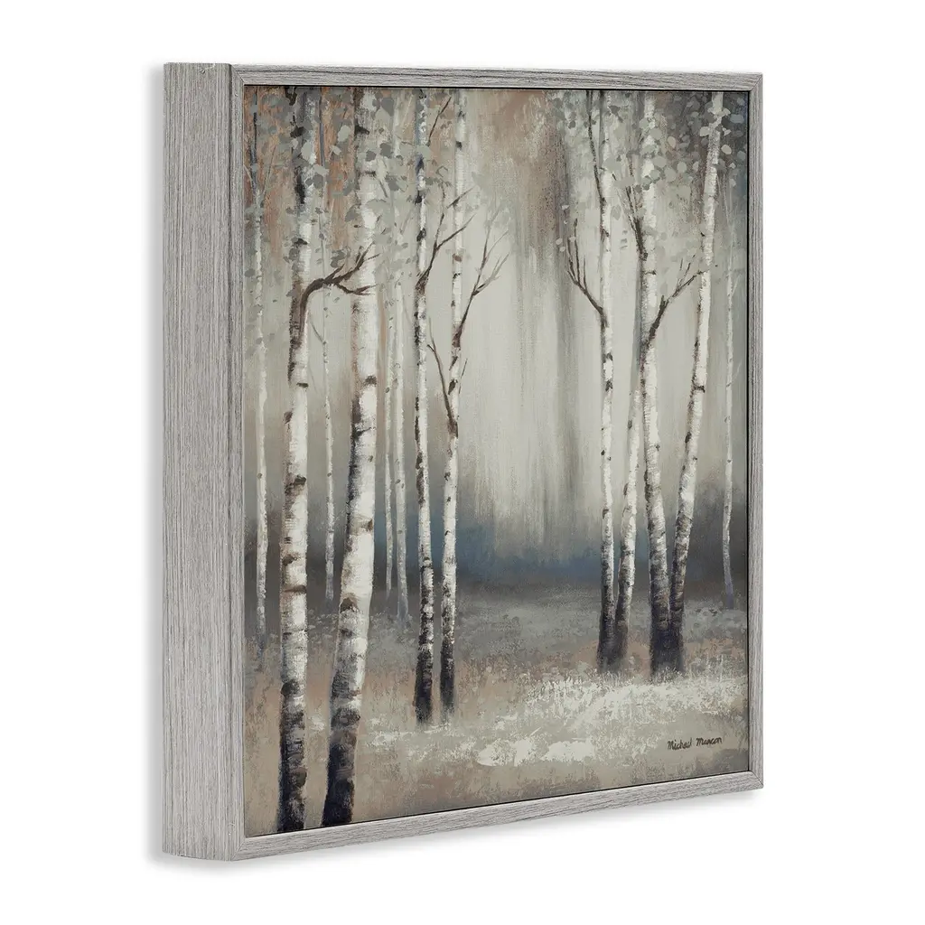 Stupell Misty Birch Tree Forest Muted Landscape Grey White Framed Wall Art - 24 X 24 - Grey