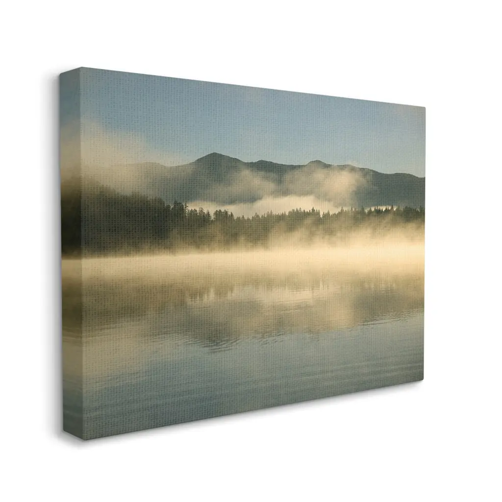 We create our stretched canvas to the highest standards. Using only the highest quality inks and canvas on Mimaki printers, we hand-cut and stretch each piece over a 1.5-inch thick wooden frame for hanging. As a result, the art comes ready to hang on the sturdy ledge with no installation required. Stupell Wall Art is made in the USA.Features: Dimensions: 20 x 1.5 x 16 InchesStretched Canvas Sizes Include Standard: 20 x 1.5 x 16 Large: 30 x 1.5 x 20 X-Large: 40 x 1.5 x 30 Oversized: 48 x 1.5 x 36Wall Art is Ready to Hang - No Installation or Hardware Needed. For Easy Set Up Lean or Layer Artwork on Shelf or Against Wall.Our stretched canvas is created with the highest standards. We use only the highest quality inks and canvas on our in house Mimaki printers, and then hand cut and stretch each piece over a 1.5 inch thick wooden frame for hanging. Made In USA.Artwork Relates To: Nature, Outdoors, Weather, Fog, Mist, Scenery, Water, Landscape, Lake, Tree, Woodland, SkyDesign by Carol Robinson