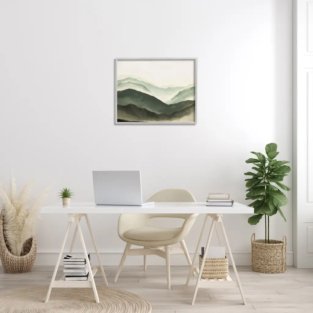 Stupell Misty Mountain Range Atmospheric Landscape Watercolor Painting Framed Wall Art, Design By Jj Design House Llc - Green - 30 X 24 - Grey