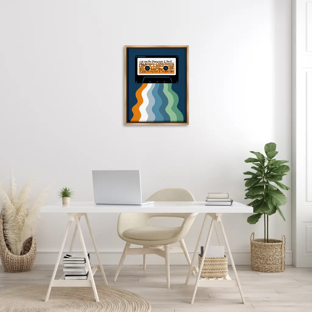 Elevate your home or office to the next level with Stupell Framed Floating Canvas Wall Art. Our premium hand-stretched canvas is mounted securely into a sturdy lightweight frame. The museum-style gap between the wrapped canvas and the box frame gives the illusion of floating artwork. Stupell Wall Art is made in the USA.Features: Dimensions: 17 x 1.7 x 21 Frame, 16 x 1.5 x 20 Canvas ArtFloating Frame Canvas Products are available in sizes 17"x21" and 25"x31". All Floating Frame Canvas Products have a 1.7" Depth.Wall Art is Ready to Hang with Hardware Free Hanging. No Installation required. For Easy Set Up Lean or Layer Artwork on Shelf or Against Wall. Artwork is Permently Fixed into the Frame.Our elevated 1.7" Thick Floating Frame is the perfect complement to our canvas style Wall Art. We use only the highest quality inks in house with industry leading printing solutions. Canvas is hand stretched over a durable wood foundation and then mounted securly into a Modern Box Frame. Made in the USA.Artwork Relates To: Cassette, Tape, Music, Groovy, Vintage, Modern, Abstract, Geometric, PatternDesign by Laura Marr
