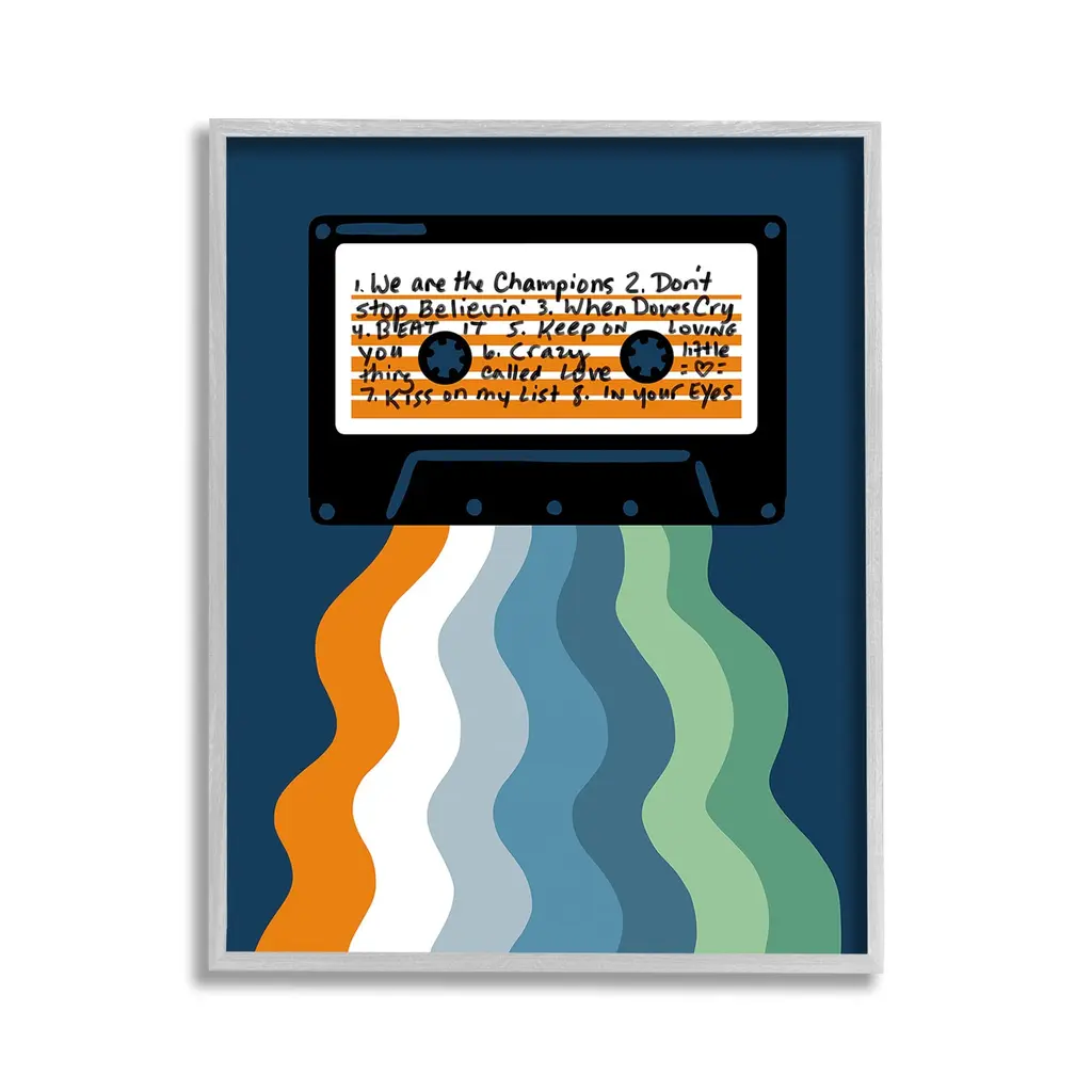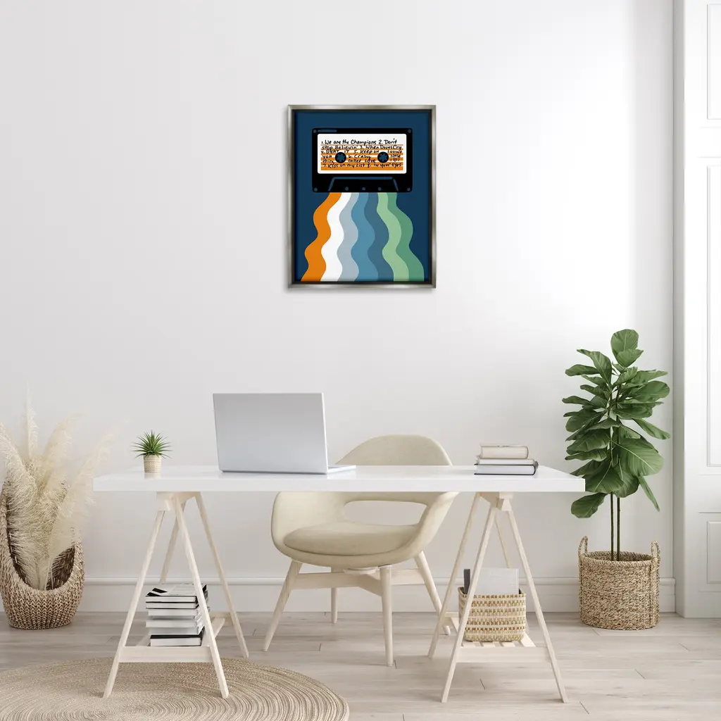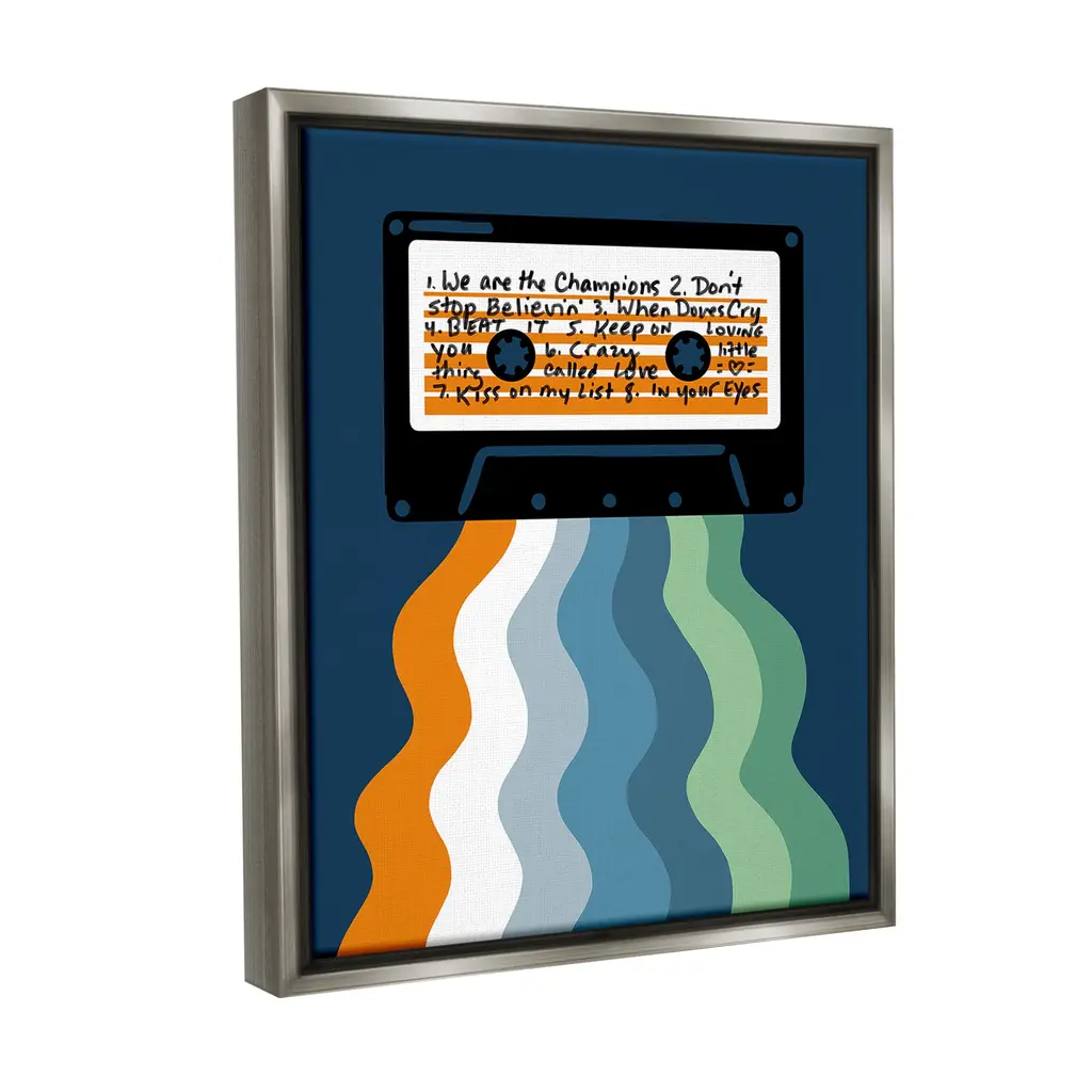 Elevate your home or office to the next level with Stupell Framed Floating Canvas Wall Art. Our premium hand-stretched canvas is mounted securely into a sturdy lightweight frame. The museum-style gap between the wrapped canvas and the box frame gives the illusion of floating artwork. Stupell Wall Art is made in the USA.Features: Dimensions: 17 x 1.7 x 21 Frame, 16 x 1.5 x 20 Canvas ArtFloating Frame Canvas Products are available in sizes 17"x21" and 25"x31". All Floating Frame Canvas Products have a 1.7" Depth.Wall Art is Ready to Hang with Hardware Free Hanging. No Installation required. For Easy Set Up Lean or Layer Artwork on Shelf or Against Wall. Artwork is Permently Fixed into the Frame.Our elevated 1.7" Thick Floating Frame is the perfect complement to our canvas style Wall Art. We use only the highest quality inks in house with industry leading printing solutions. Canvas is hand stretched over a durable wood foundation and then mounted securly into a Modern Box Frame. Made in the USA.Artwork Relates To: Cassette, Tape, Music, Groovy, Vintage, Modern, Abstract, Geometric, PatternDesign by Laura Marr