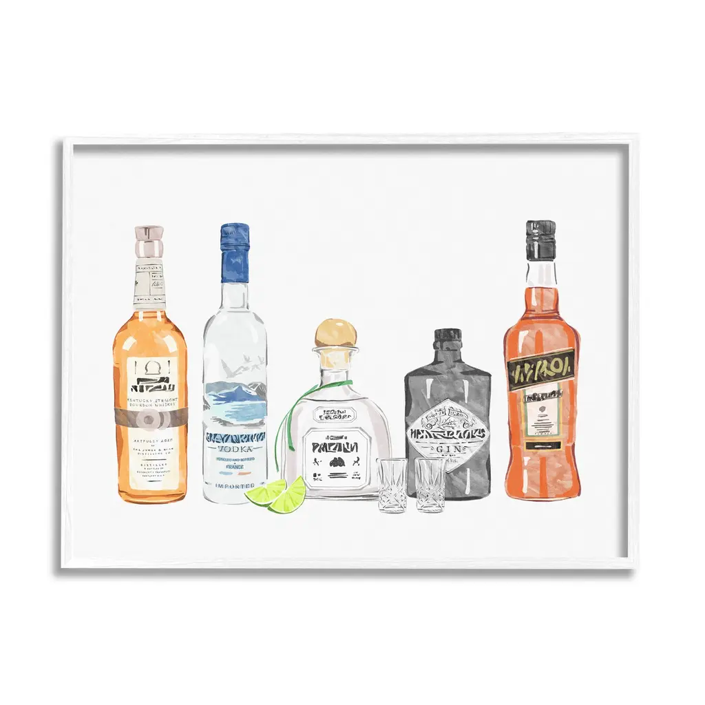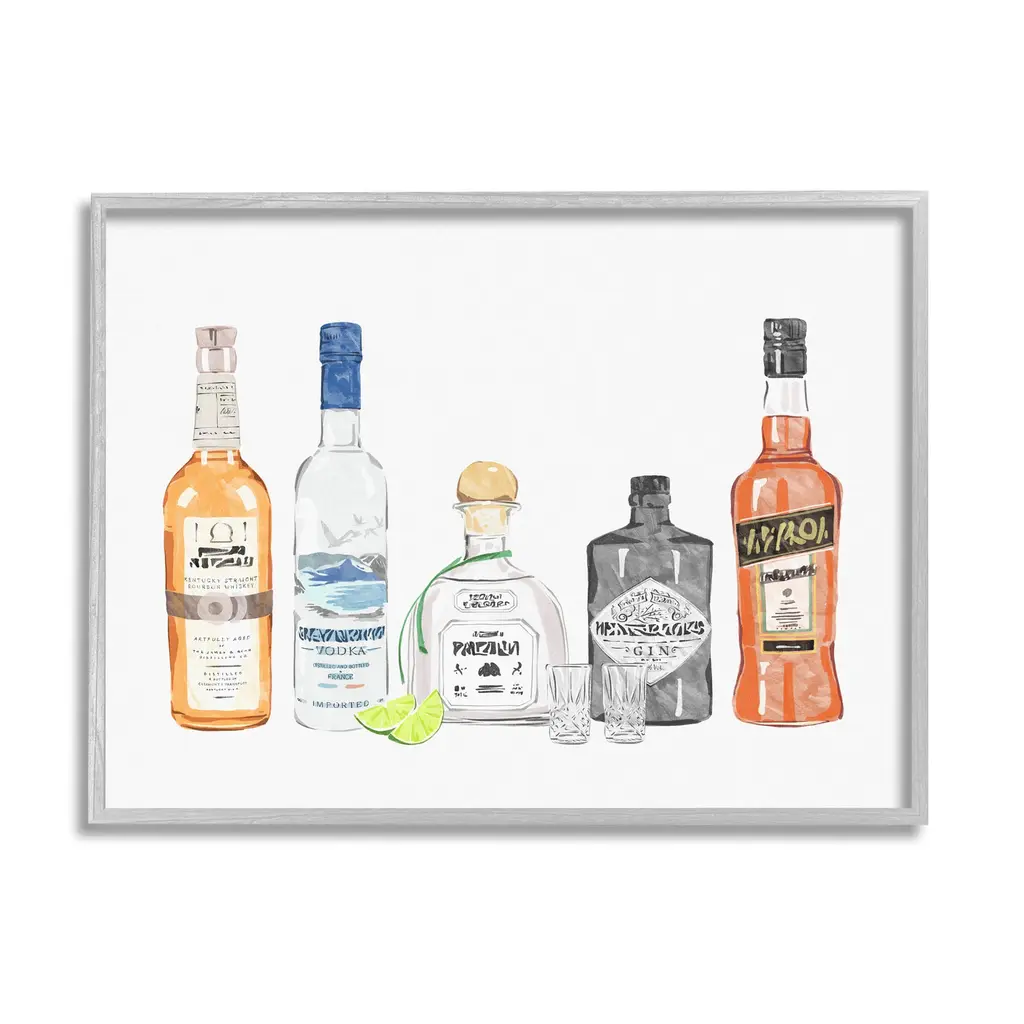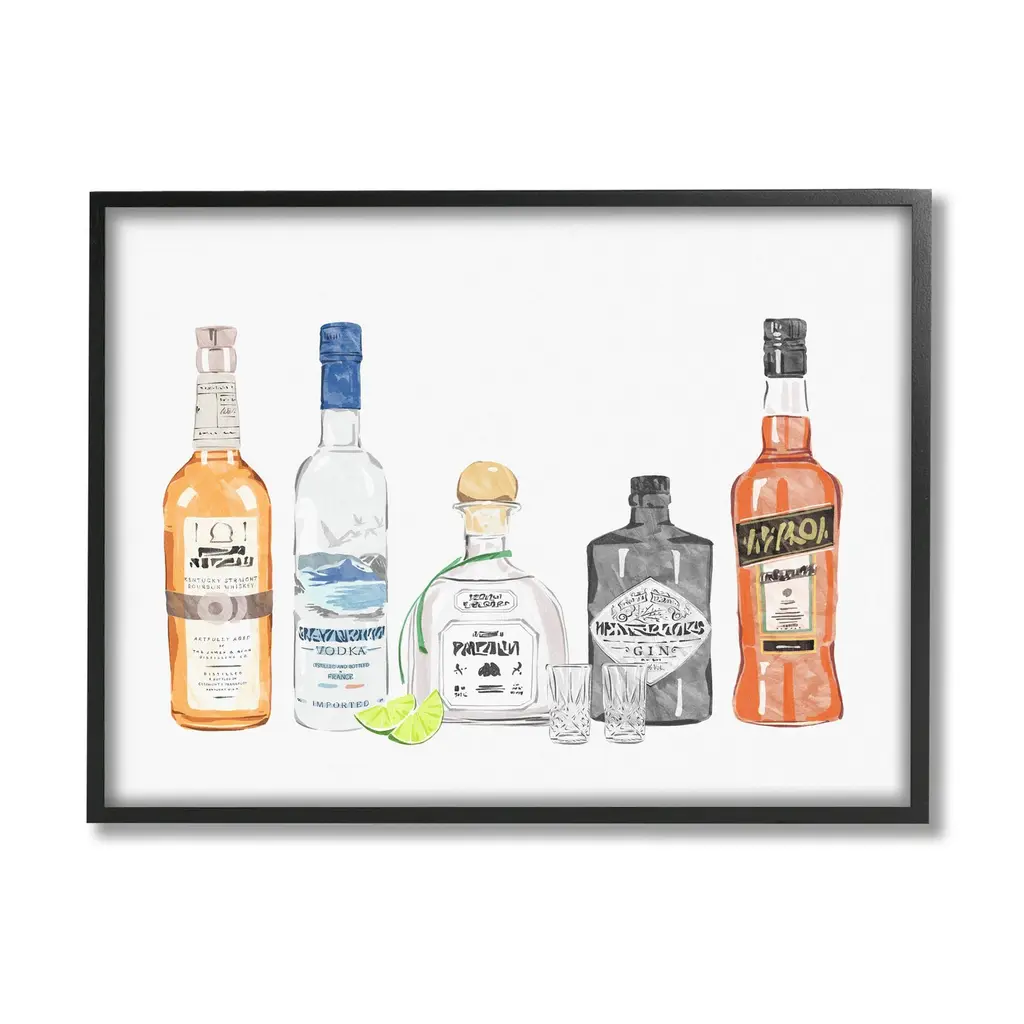 Our Framed Giclee Wall Art adds a touch of class to any space in your home or office. Frames are available in three alluring styles: black, gray farmhouse and white. Our textured artwork will add more depth and dimension to any space. Each piece is mounted with a 1.5 inch thick wood grain frame that is ready to hang! Looking for a statement piece? We have oversized artwork available.Features:Dimensions: 14 x 1.5 x 11 FramedFramed Giclee Sizes IncludeStandard: 14 x 1.5 x 11Large: 20 x 1.5 x 16Oversized: 30 x 1.5 x 24Wall Art is Ready to Hang - No Installation or Hardware Needed. For Easy Set Up Lean or Layer Artwork on Shelf or Against Wall.Our giclee prints are carefully mounted on a durable MDF backing, and then perfectly finished in a 1.5 inch thick woodgrain frame. Mounted frame colors include black, gray farmhouse and white. Made In USA.Artwork Relates To: Liquor; Alcohol; Beverage; Gin; Bottle; Tequila, Bar, KitchenDesign by Ziwei Li