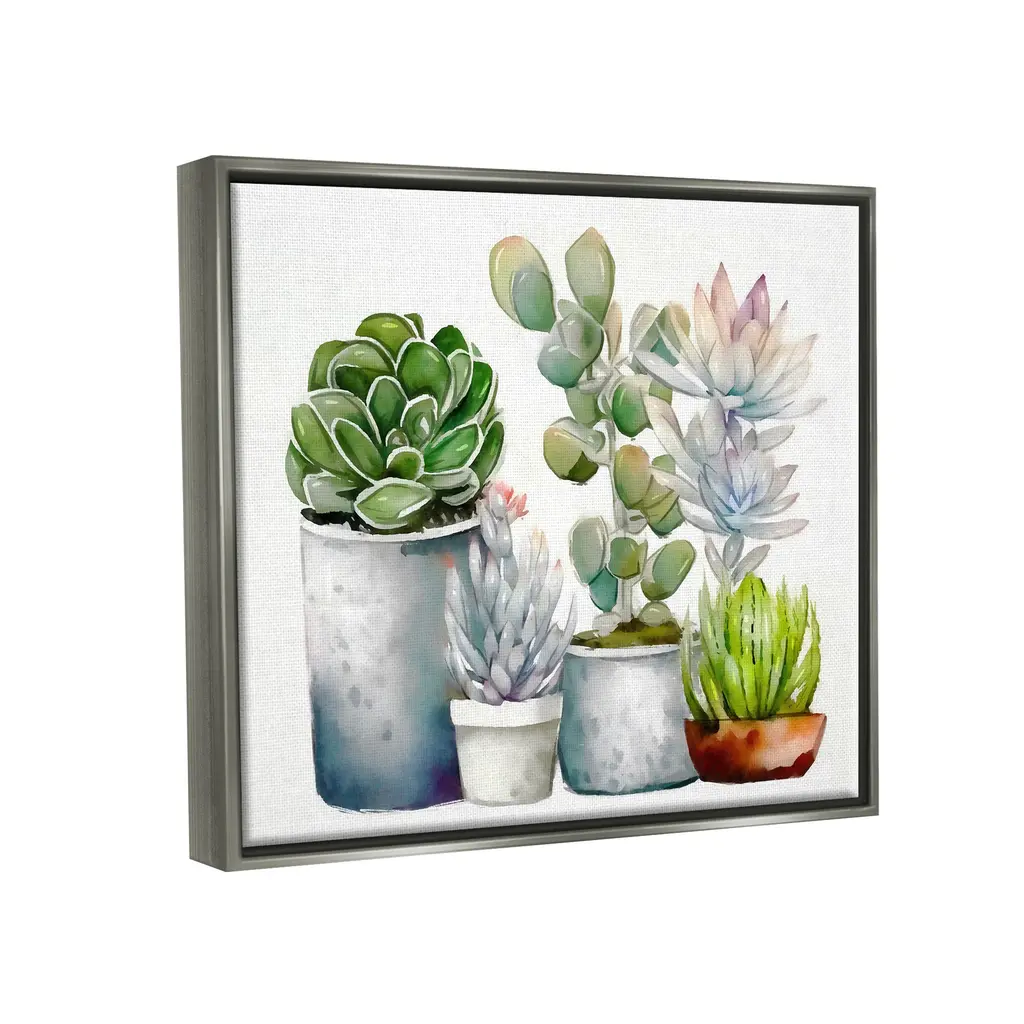Elevate your home or office to the next level with Stupell Framed Floating Canvas Wall Art. Our premium hand-stretched canvas is mounted securely into a sturdy lightweight frame. The museum-style gap between the wrapped canvas and the box frame gives the illusion of floating artwork. Stupell Wall Art is made in the USA.Features: Dimensions: 21 x 1.7 x 17 Frame, 20 x 1.5 x 16 Canvas ArtFloating Frame Sizes Include Standard: 21 x 1.7 x 17 Oversized: 31 x 1.7 x 25Wall Art is Ready to Hang - No Installation or Hardware Needed. For Easy Set Up Lean or Layer Artwork on Shelf or Against Wall.Our elevated 1.7" Thick Floating Frame is the perfect complement to our canvas style Wall Art. We use only the highest quality inks in house with industry leading printing solutions. Canvas is hand stretched over a durable wood foundation and then mounted securly into a Modern Box Frame. Made in the USA.Artwork Relates To: Plant, Potted Plant, Flower, Flower Arrangement, Succulent, BotanicalDesign by Ziwei Li