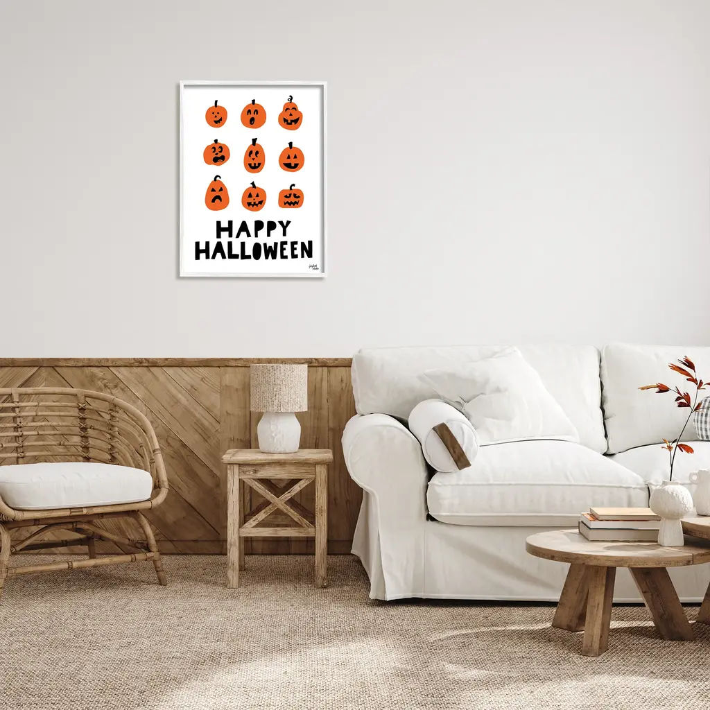 It is time to set up your room with of our fresh new 'Framed Giclee Textured Wall Art' pieces. You may have seen our Wooden or Canvas products, but our framed products are now available in three alluring styles: black, gray farmhouse and white. Our textured artwork will add more depth and dimension to any space. Each piece is mounted with a 1.5 inch thick wood grain frame that is ready to hang! Looking for a statement piece? We have oversized artwork available.Features: Wall Art is Ready to Hang - No Installation or Hardware Needed. For Easy Set Up Lean or Layer Artwork on Shelf or Against Wall.Our giclee prints are carefully mounted on a durable MDF backing, and then perfectly finished in a 1.5 inch thick woodgrain frame. Frame colors include black, gray farmhouse and white. Made In USA.Artwork Relates To: Halloween; Pumpkin; Plant; Vegetable; Happy Halloween; FacesDesign by Jess Baskin