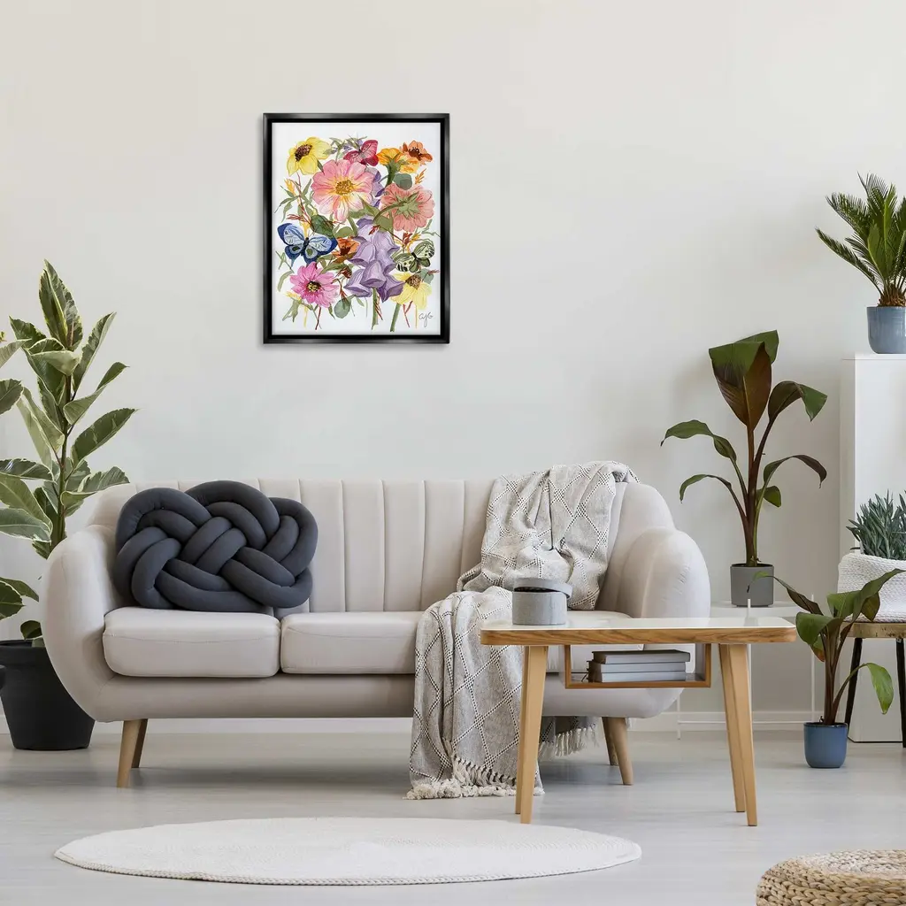 Stupell Mixed Florals & Butterflies Framed Floater Canvas Wall Art Design By Alexandria Gilbert Kincaid - 25 X 31 - Black