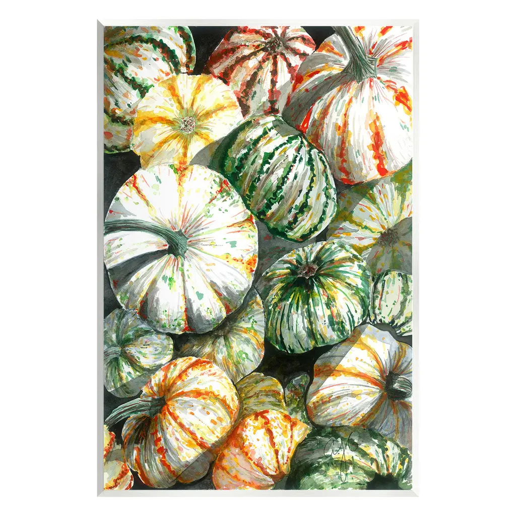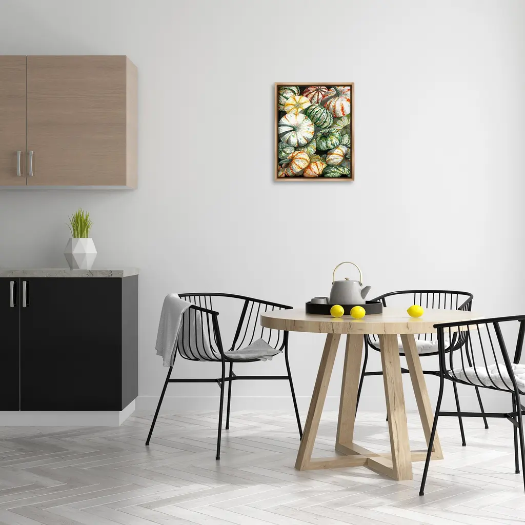 Elevate your home or office to the next level with Stupell Framed Floating Canvas Wall Art. Our premium hand-stretched canvas is mounted securely into a sturdy lightweight frame. The museum-style gap between the wrapped canvas and the box frame gives the illusion of floating artwork. Stupell Wall Art is made in the USA.Features: Dimensions: 17 x 1.7 x 21 Frame, 16 x 1.5 x 20 Canvas ArtFloating Frame Canvas Products are available in sizes 17"x21" and 25"x31". All Floating Frame Canvas Products have a 1.7" Depth.Wall Art is Ready to Hang with Hardware Free Hanging. No Installation required. For Easy Set Up Lean or Layer Artwork on Shelf or Against Wall. Artwork is Permently Fixed into the Frame.Our elevated 1.7" Thick Floating Frame is the perfect complement to our canvas style Wall Art. We use only the highest quality inks in house with industry leading printing solutions. Canvas is hand stretched over a durable wood foundation and then mounted securly into a Modern Box Frame. Made in the USA.Artwork Relates To: Plant, Produce, Squash, Vegetable, Pumpkin, Gourd, Fall, Autumn, PatternDesign by Alexandria Gilbert Kincaid