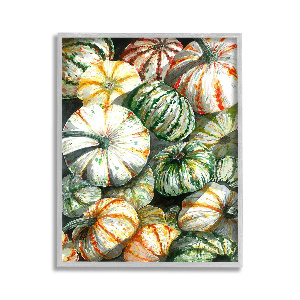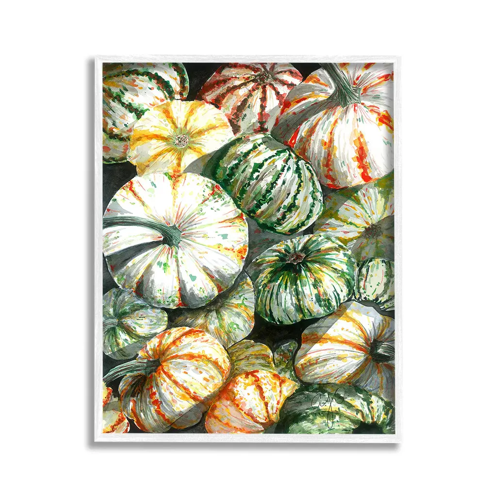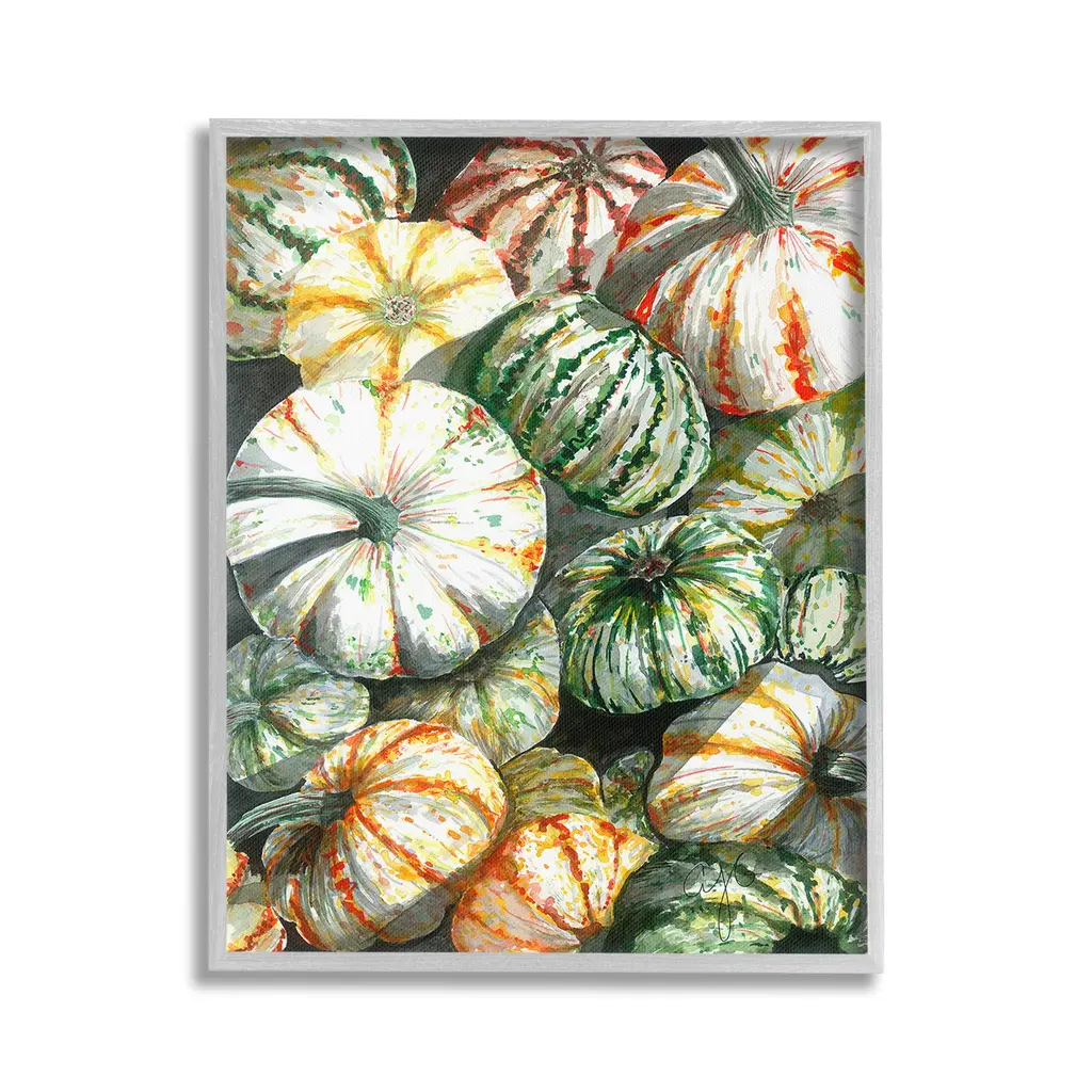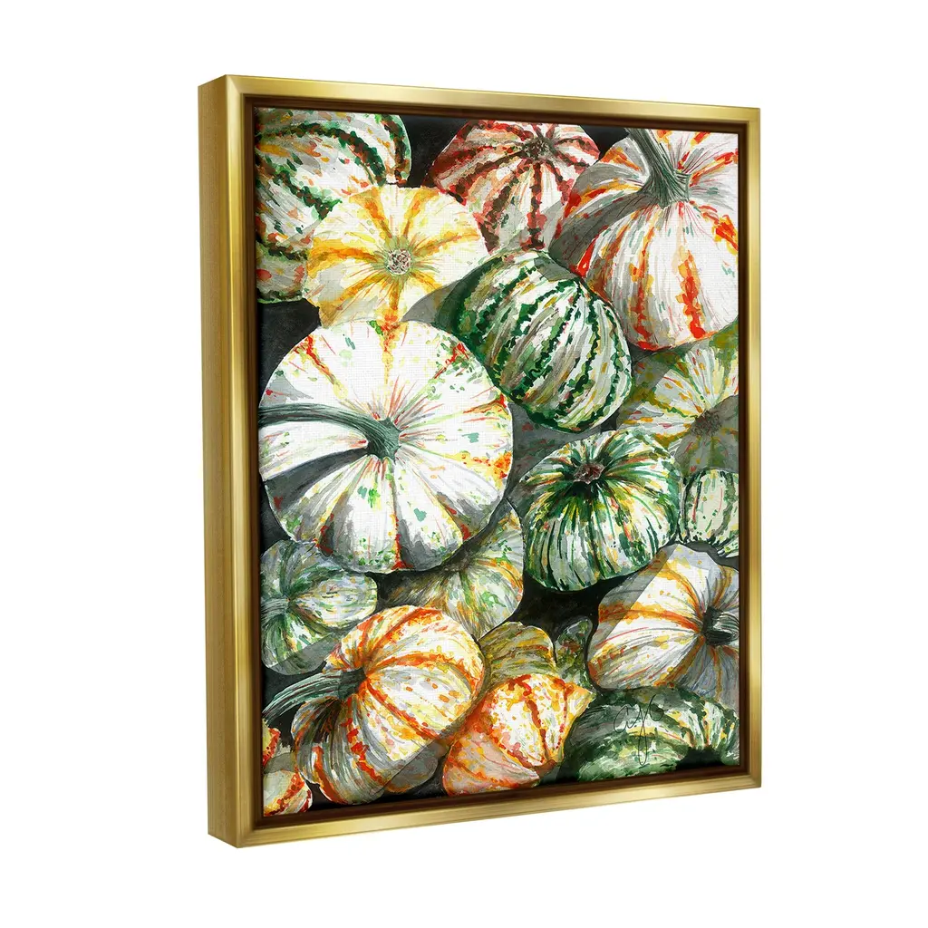 Elevate your home or office to the next level with Stupell Framed Floating Canvas Wall Art. Our premium hand-stretched canvas is mounted securely into a sturdy lightweight frame. The museum-style gap between the wrapped canvas and the box frame gives the illusion of floating artwork. Stupell Wall Art is made in the USA.Features: Dimensions: 17 x 1.7 x 21 Frame, 16 x 1.5 x 20 Canvas ArtFloating Frame Canvas Products are available in sizes 17"x21" and 25"x31". All Floating Frame Canvas Products have a 1.7" Depth.Wall Art is Ready to Hang with Hardware Free Hanging. No Installation required. For Easy Set Up Lean or Layer Artwork on Shelf or Against Wall. Artwork is Permently Fixed into the Frame.Our elevated 1.7" Thick Floating Frame is the perfect complement to our canvas style Wall Art. We use only the highest quality inks in house with industry leading printing solutions. Canvas is hand stretched over a durable wood foundation and then mounted securly into a Modern Box Frame. Made in the USA.Artwork Relates To: Plant, Produce, Squash, Vegetable, Pumpkin, Gourd, Fall, Autumn, PatternDesign by Alexandria Gilbert Kincaid