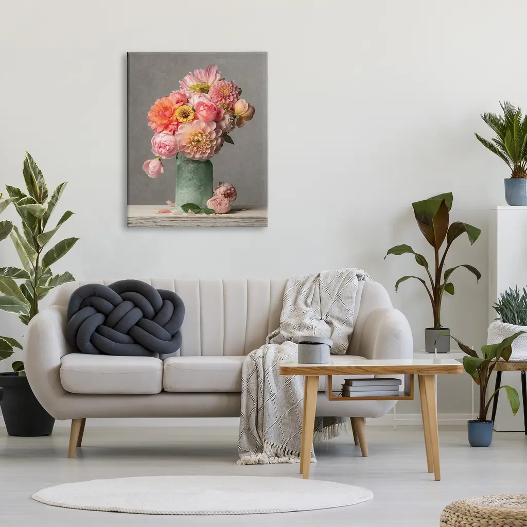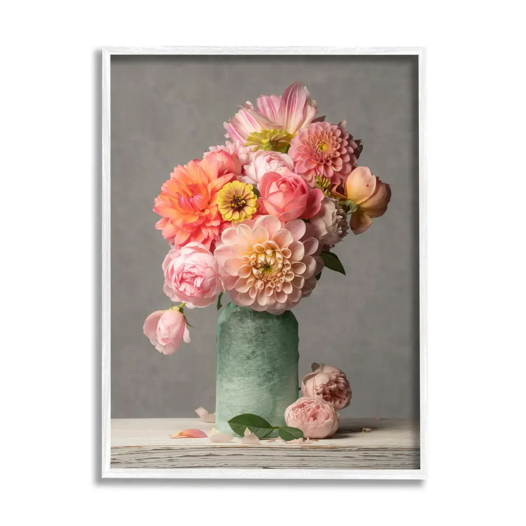 We create our stretched canvas to the highest standards. Using only the highest quality inks and canvas on Mimaki printers, we hand-cut and stretch each piece over a 1.5-inch thick wooden frame for hanging. As a result, the art comes ready to hang on the sturdy ledge with no installation required. Stupell Wall Art is made in the USA.Features: Dimensions: 16 x 1.5 x 20 InchesStretched Canvas Sizes Include Standard: 16 x 1.5 x 20 Large: 20 x 1.5 x 30 X-Large: 30 x 1.5 x 40 Oversized: 36 x 1.5 x 48Wall Art is Ready to Hang - No Installation or Hardware Needed. For Easy Set Up Lean or Layer Artwork on Shelf or Against Wall.Our stretched canvas is created with the highest standards. We use only the highest quality inks and canvas on our in house Mimaki printers, and then hand cut and stretch each piece over a 1.5 inch thick wooden frame for hanging. Made In USA.Artwork Relates To: Flower, Flower Arrangement, Plant, Dahlia, Flower Bouquet, Petal, Rose, Floral, Ikebana, PeonyDesign by Leah McLean