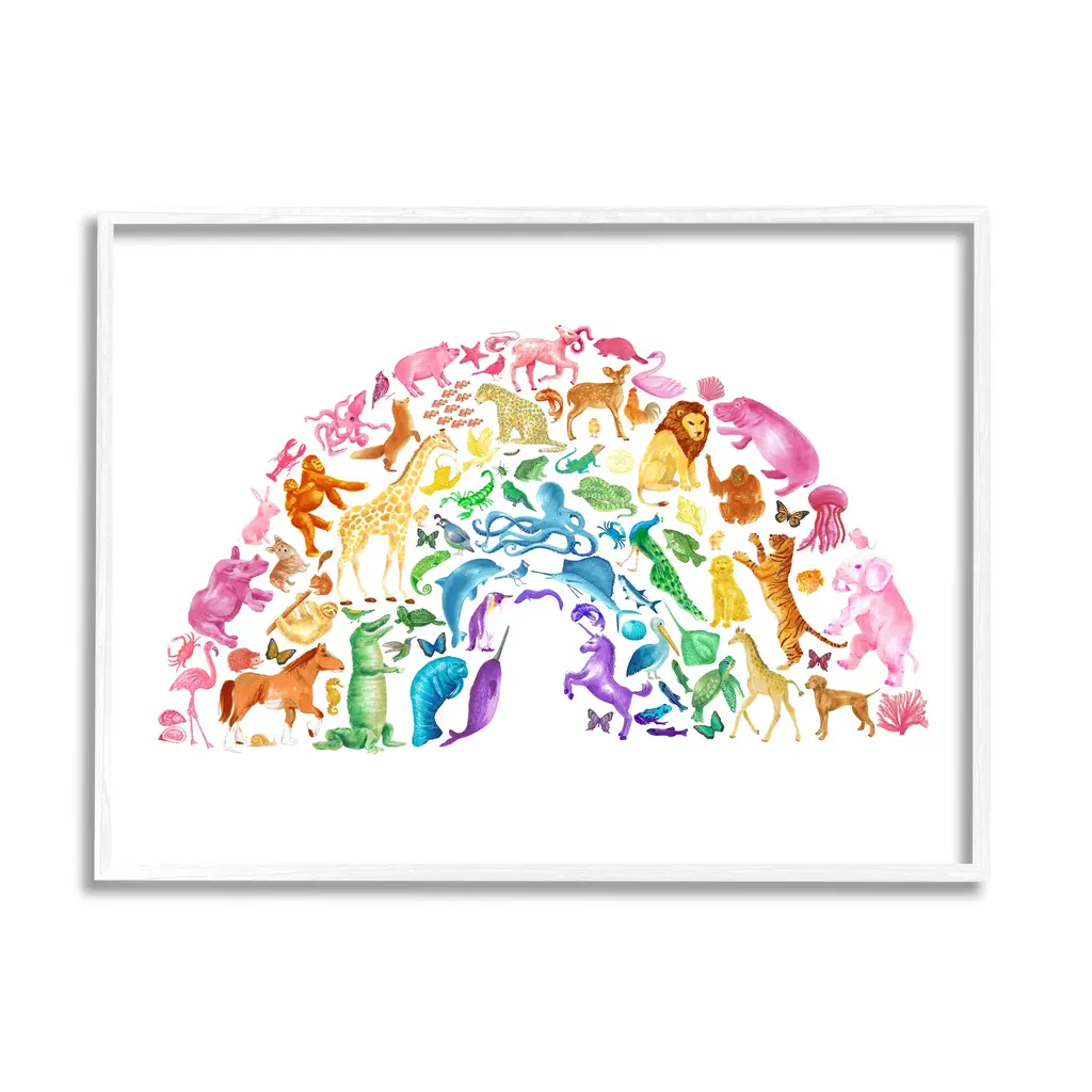 Stupell Mixed Rainbow Animals Wildlife Arched Rainbow Shape Framed Wall Art, Design By Dishique - Multi - 14 X 11 - Grey
