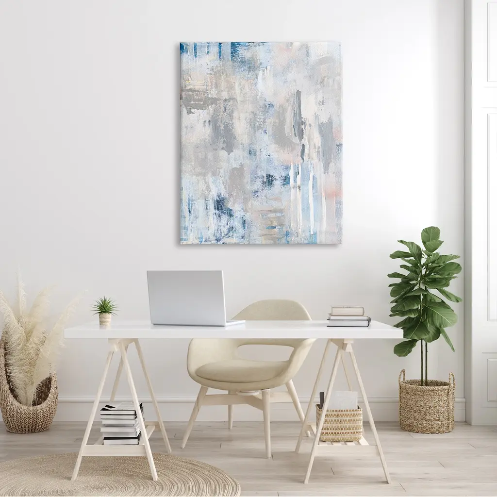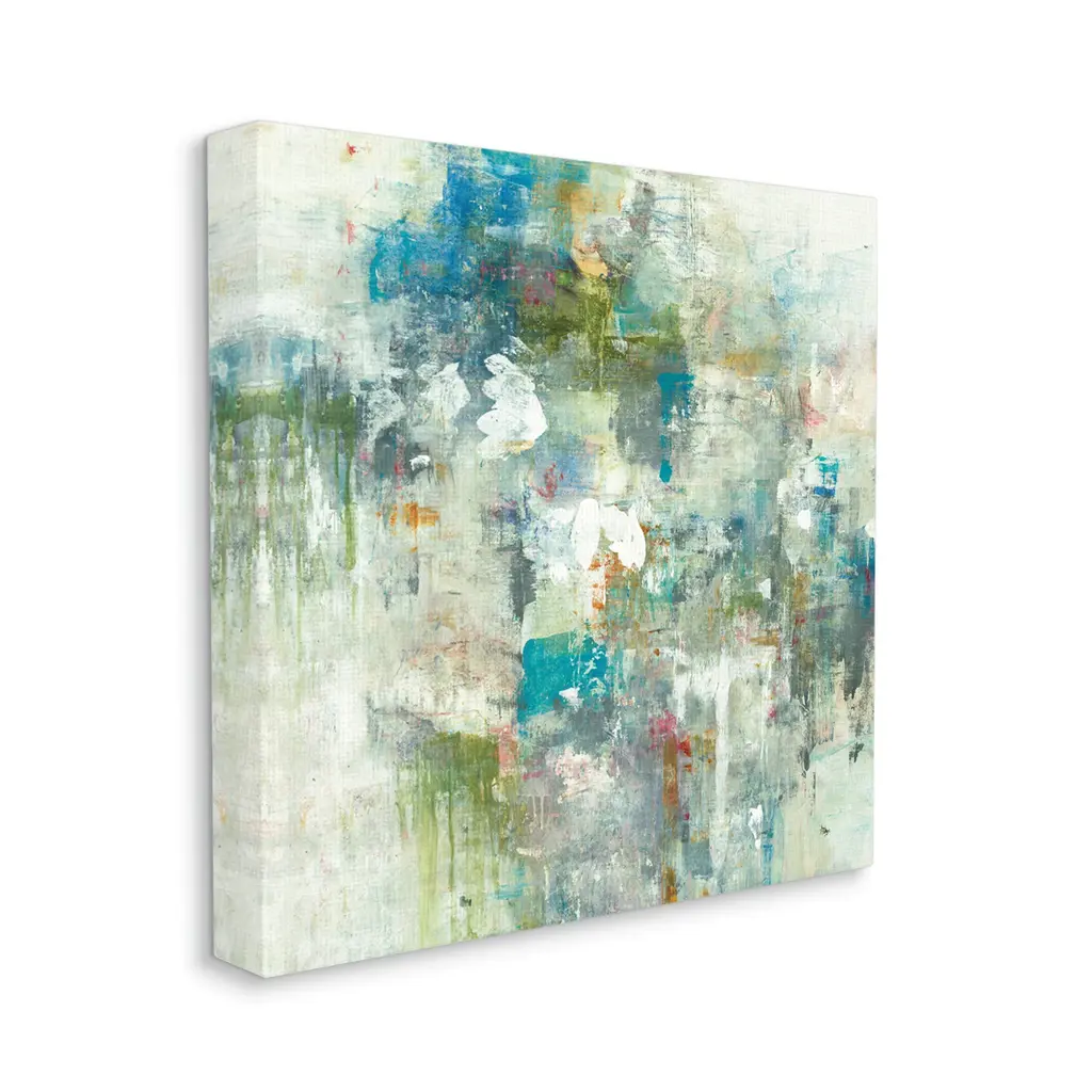 Stupell Modern Abstract Cascading Painting Blue Pink Grey Composition Canvas Wall Art - 36 X 48