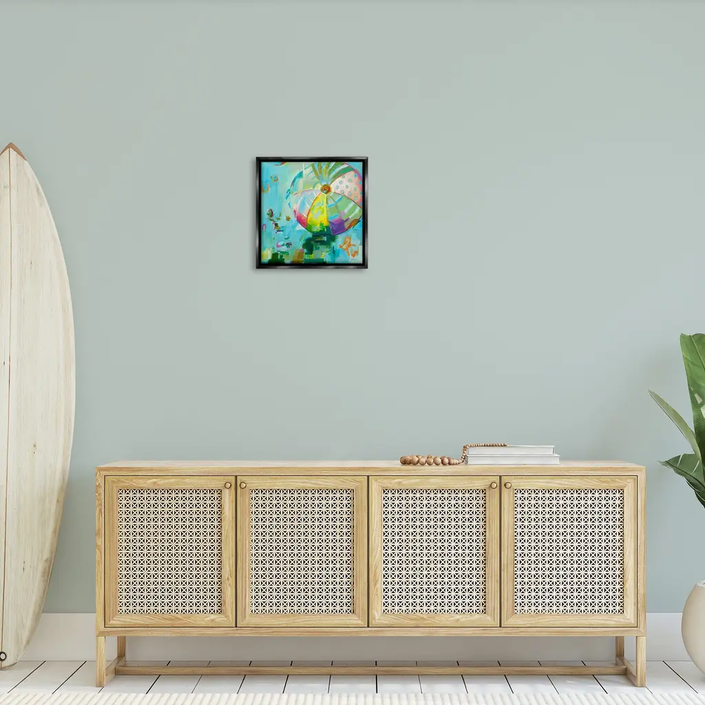 Elevate your home or office to the next level with Stupell Framed Floating Canvas Wall Art. Our premium hand-stretched canvas is mounted securely into a sturdy lightweight frame. The museum-style gap between the wrapped canvas and the box frame gives the illusion of floating artwork. Stupell Wall Art is made in the USA.Features: Dimensions: 18 x 1.7 x 18 Frame, 17 x 1.5 x 17 Canvas ArtFloating Frame Canvas Products are available in sizes 18"x18" and 25"x25". All Floating Frame Canvas Products have a 1.7" Depth.Wall Art is Ready to Hang with Hardware Free Hanging. No Installation required. For Easy Set Up Lean or Layer Artwork on Shelf or Against Wall. Artwork is Permently Fixed into the Frame.Our elevated 1.7" Thick Floating Frame is the perfect complement to our canvas style Wall Art. We use only the highest quality inks in house with industry leading printing solutions. Canvas is hand stretched over a durable wood foundation and then mounted securly into a Modern Box Frame. Made in the USA.Artwork Relates To: Modern, Painting, Abstract, Beach, Beach Ball, Fun, Summer, PatternDesign by Liz Jardine