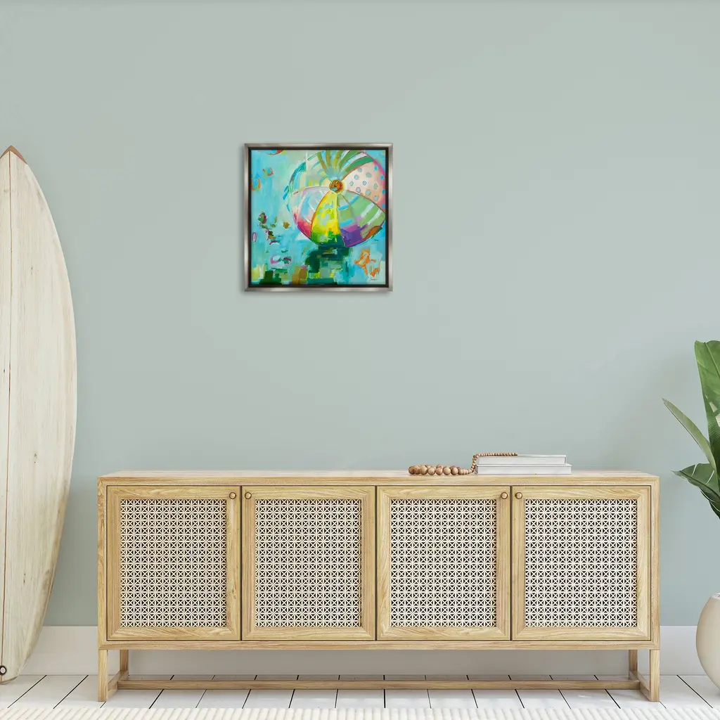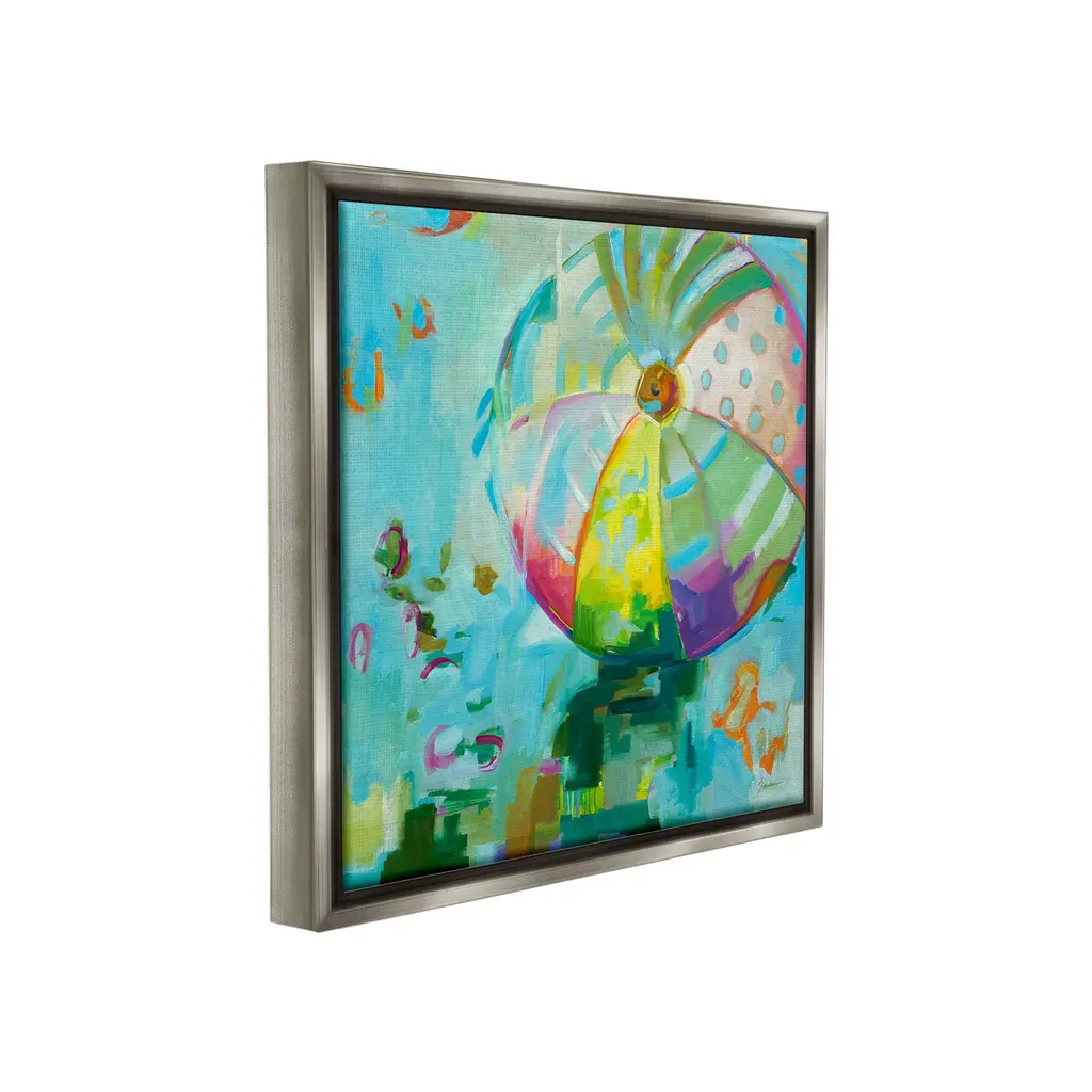 Elevate your home or office to the next level with Stupell Framed Floating Canvas Wall Art. Our premium hand-stretched canvas is mounted securely into a sturdy lightweight frame. The museum-style gap between the wrapped canvas and the box frame gives the illusion of floating artwork. Stupell Wall Art is made in the USA.Features: Dimensions: 18 x 1.7 x 18 Frame, 17 x 1.5 x 17 Canvas ArtFloating Frame Canvas Products are available in sizes 18"x18" and 25"x25". All Floating Frame Canvas Products have a 1.7" Depth.Wall Art is Ready to Hang with Hardware Free Hanging. No Installation required. For Easy Set Up Lean or Layer Artwork on Shelf or Against Wall. Artwork is Permently Fixed into the Frame.Our elevated 1.7" Thick Floating Frame is the perfect complement to our canvas style Wall Art. We use only the highest quality inks in house with industry leading printing solutions. Canvas is hand stretched over a durable wood foundation and then mounted securly into a Modern Box Frame. Made in the USA.Artwork Relates To: Modern, Painting, Abstract, Beach, Beach Ball, Fun, Summer, PatternDesign by Liz Jardine